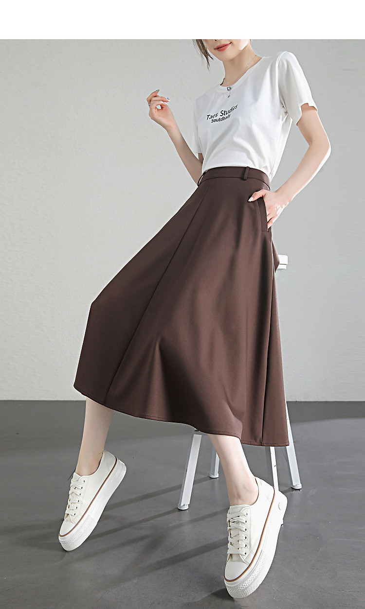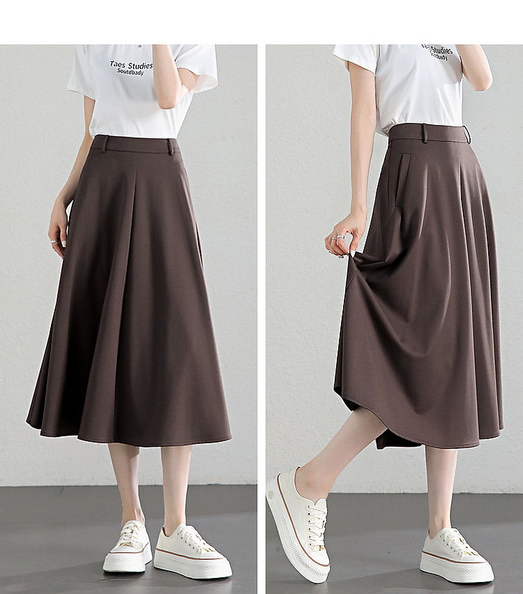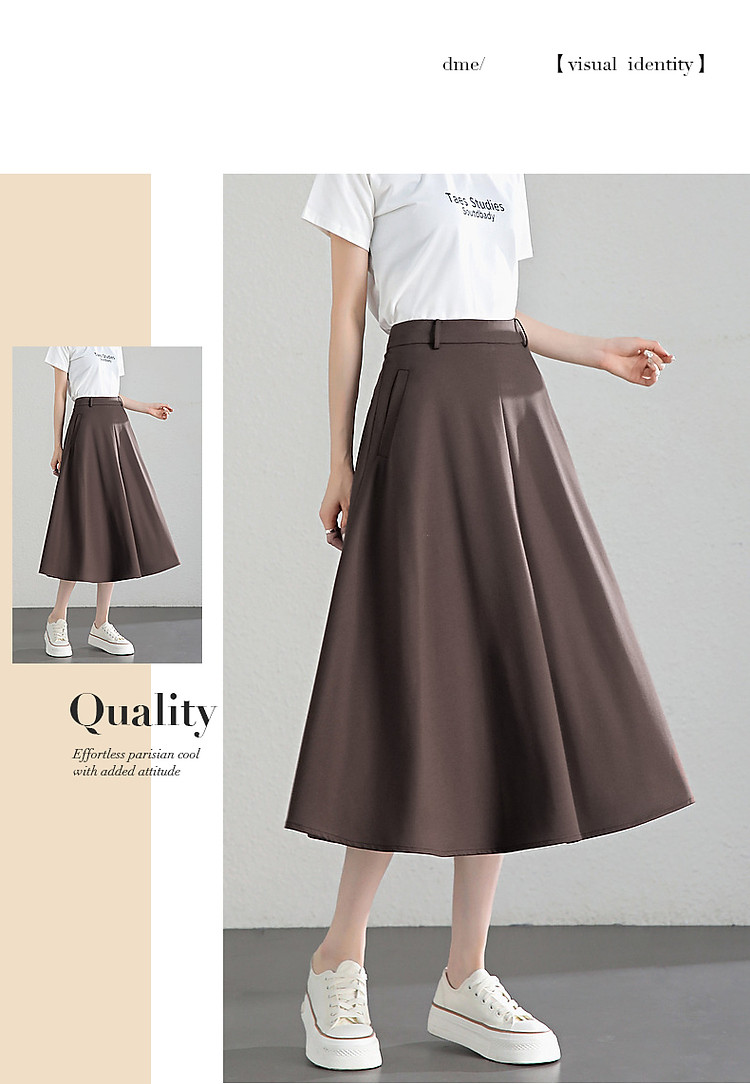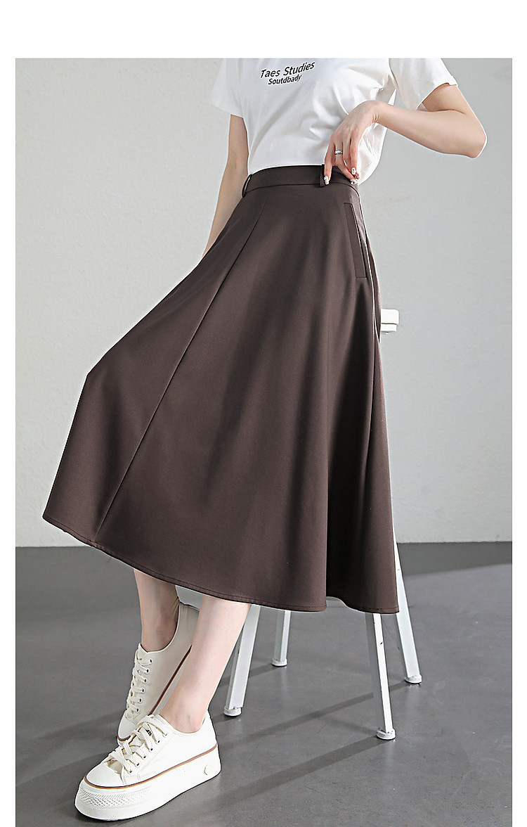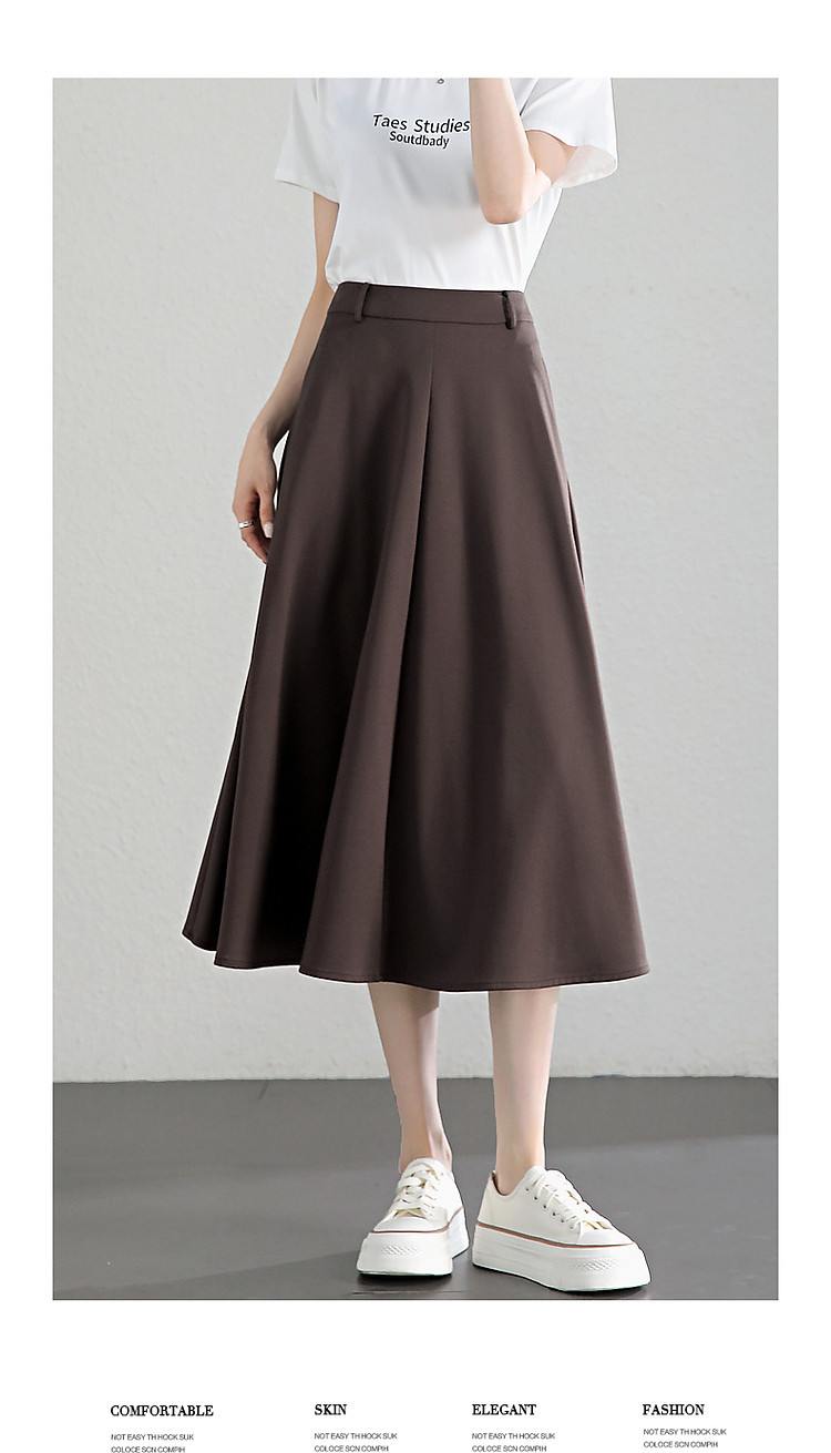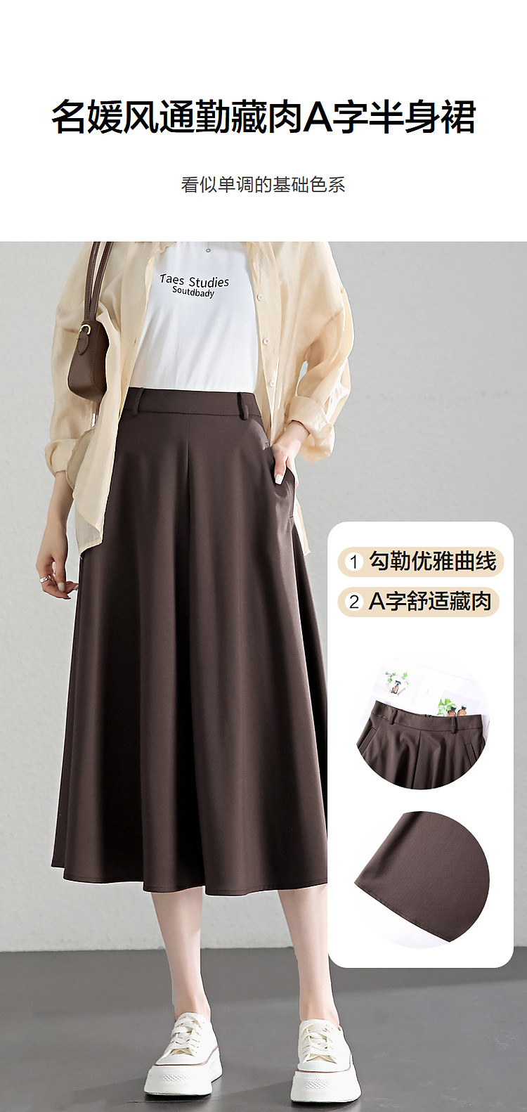 商品名称:【微醺探戈】秋名媛风通勤中高腰伞裙舒适藏肉A字中长半身裙女 203137