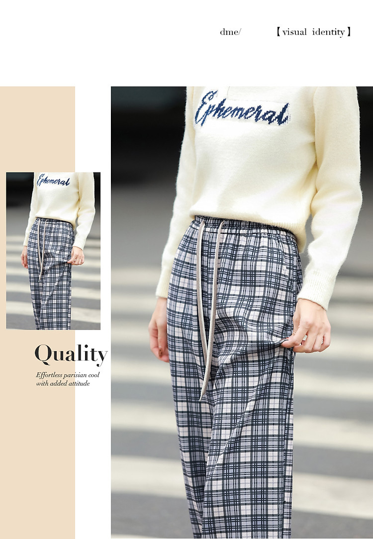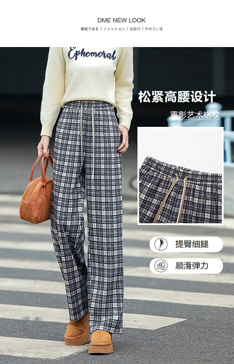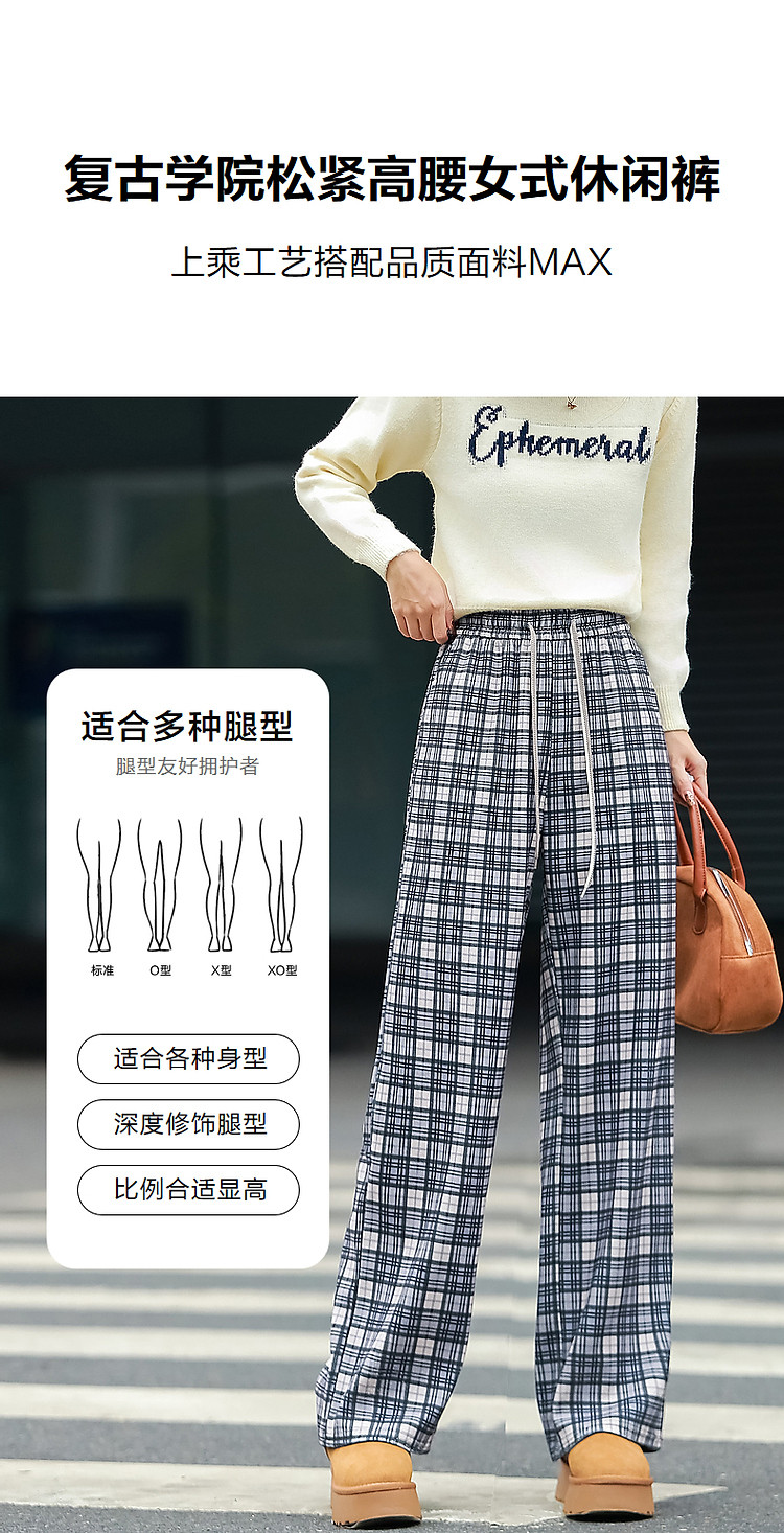 商品名称:【雅趣英伦】秋复古学院松紧高腰重影艺术格纹遮肉好搭女式休闲裤 361345
