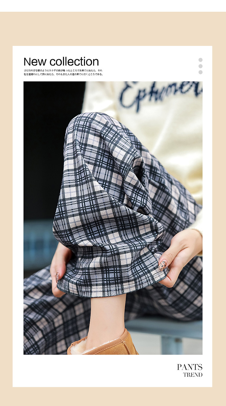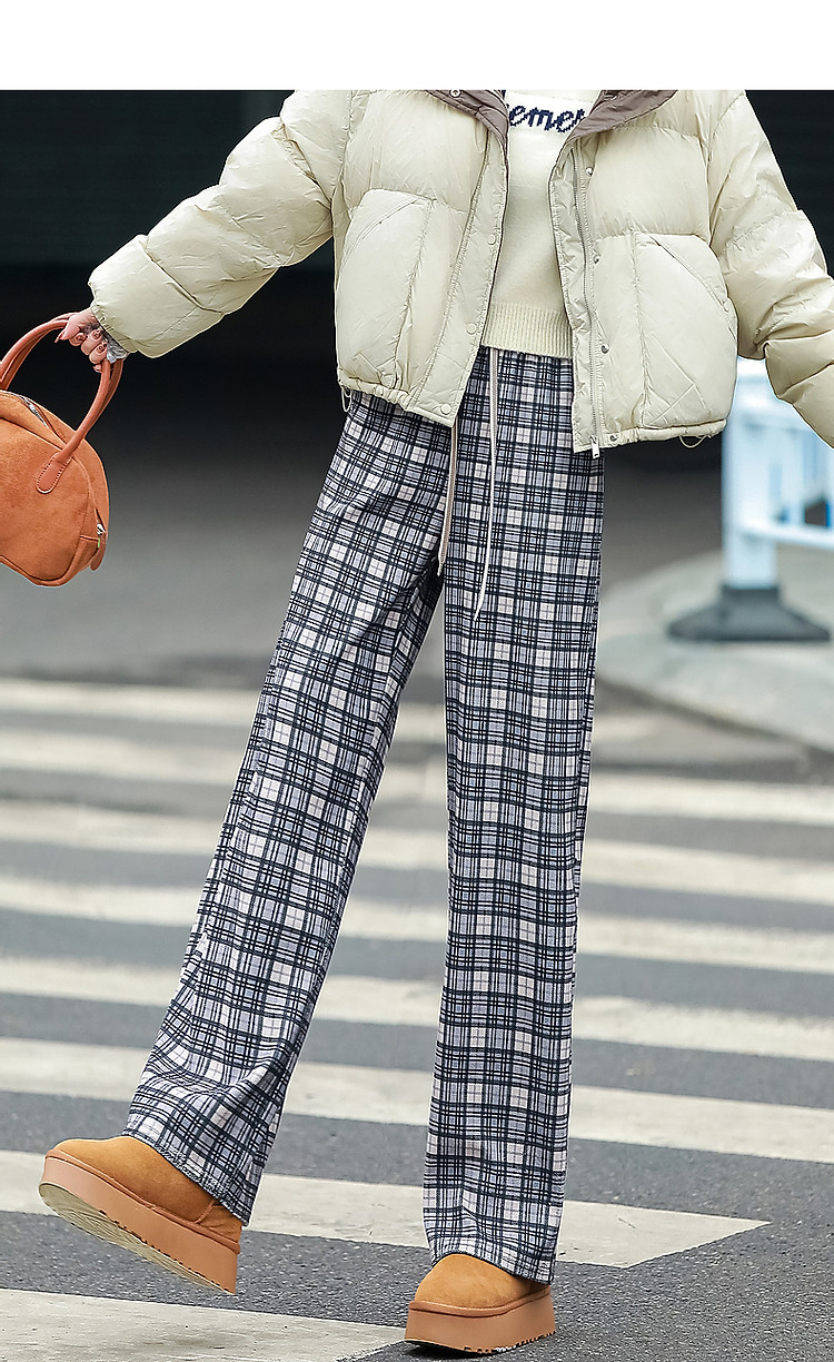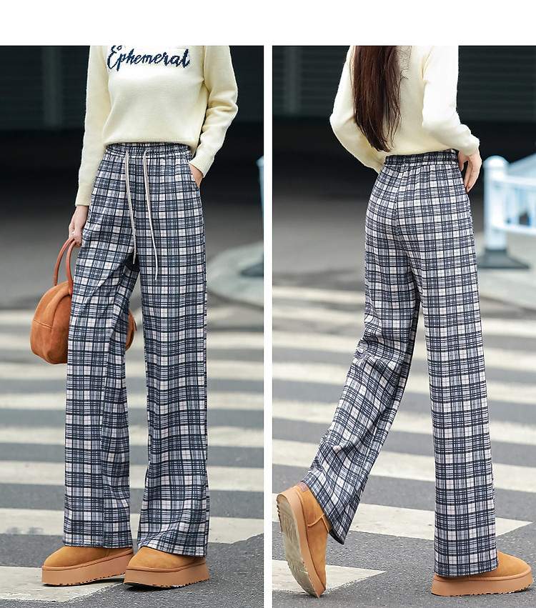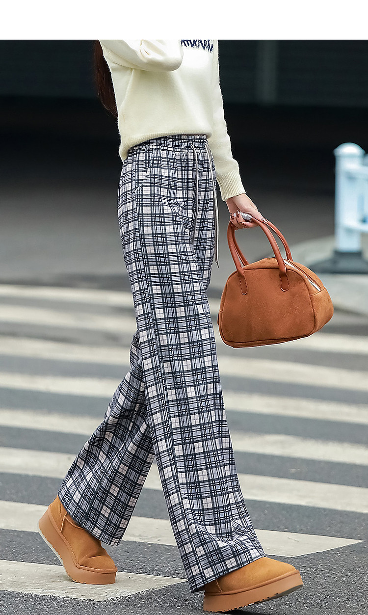 商品名称:【雅趣英伦】秋复古学院松紧高腰重影艺术格纹遮肉好搭女式休闲裤 361345
