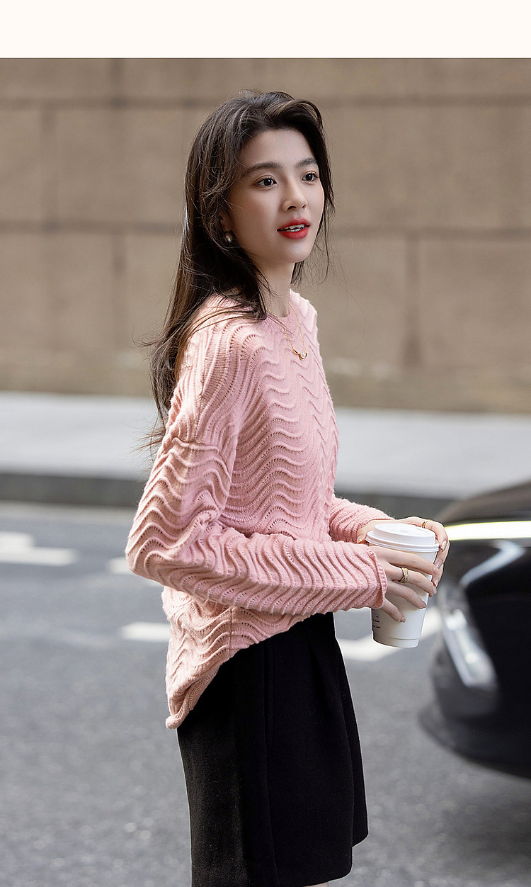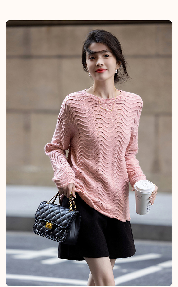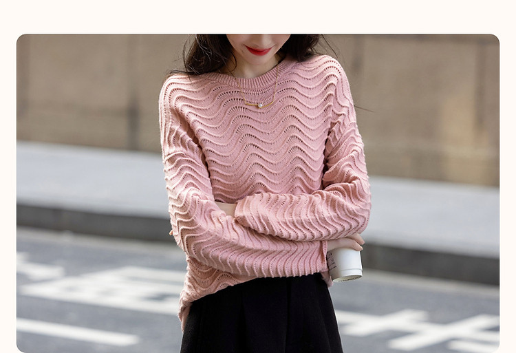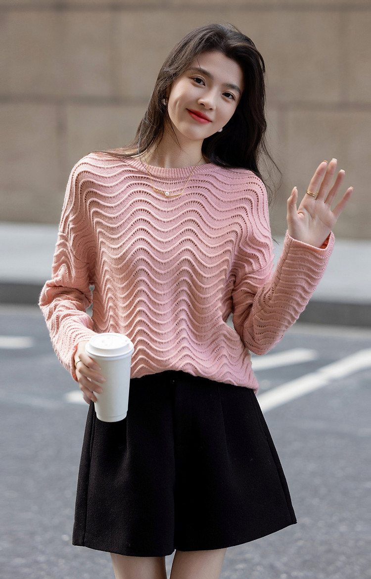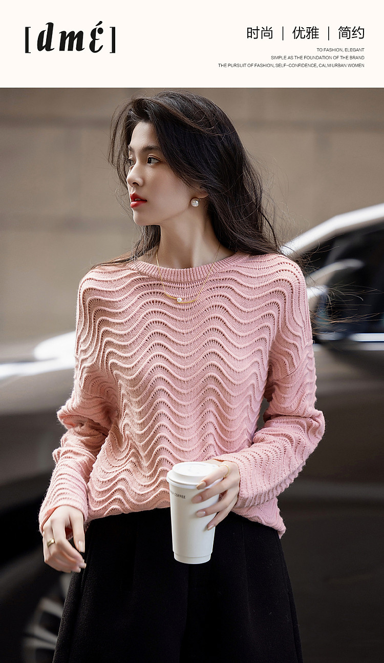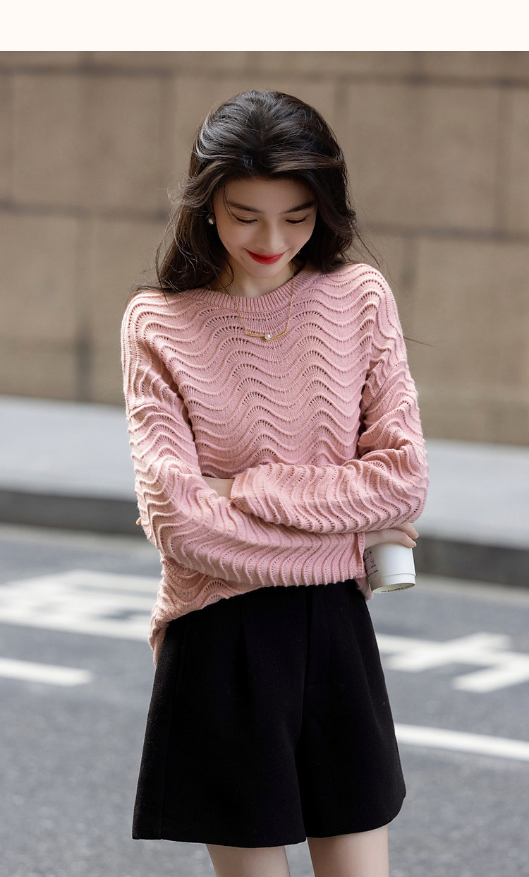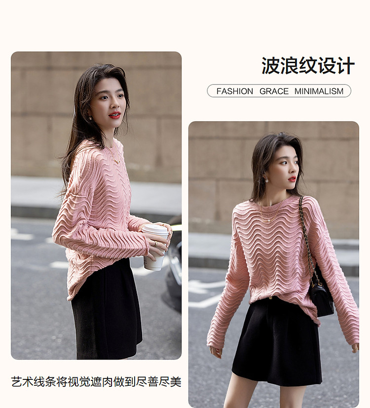 商品名称:【旋涡里的星云】春秋艺术感镂空线衫慵懒风波浪肌理针织衫女上衣 940225