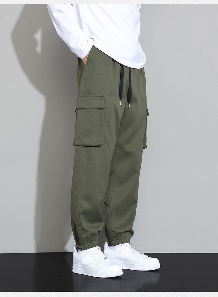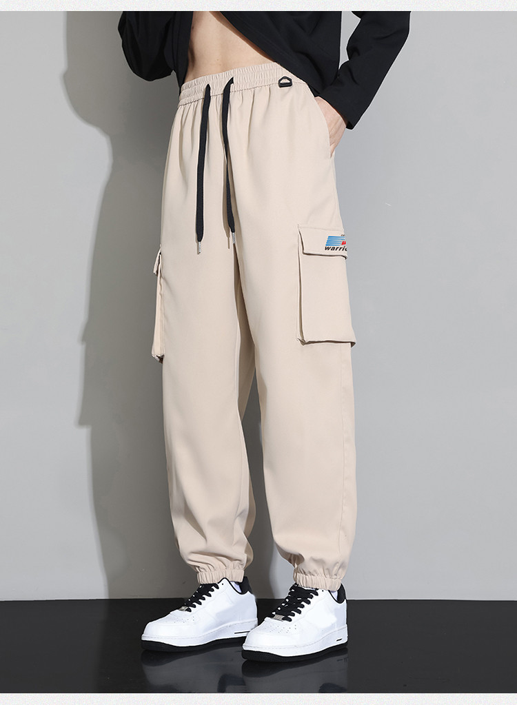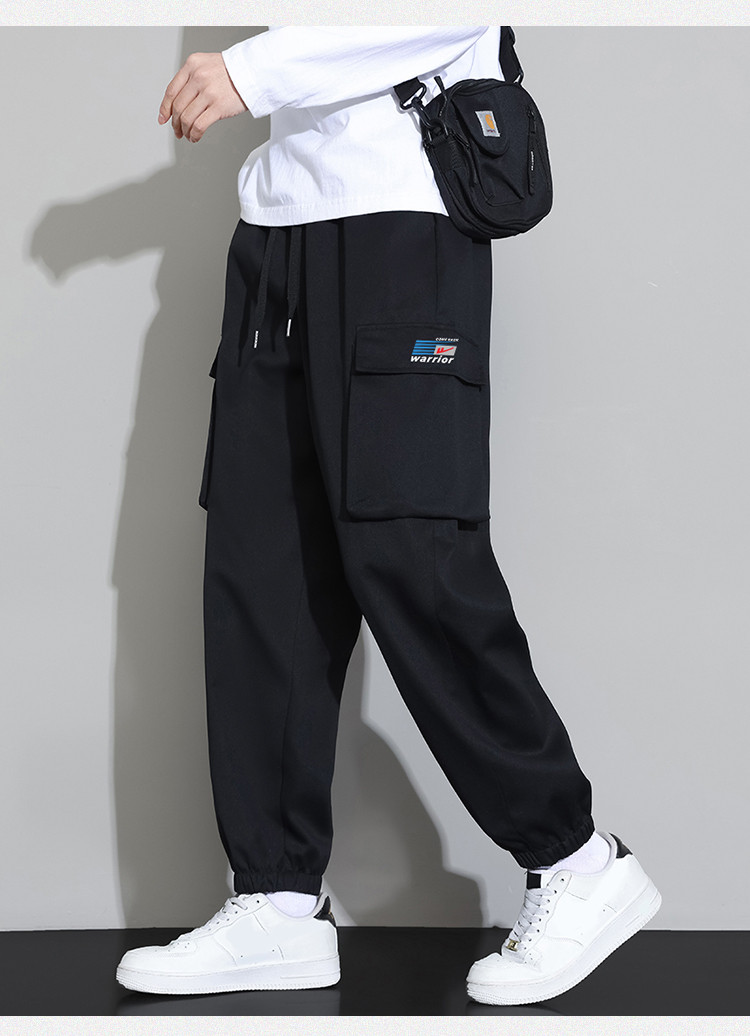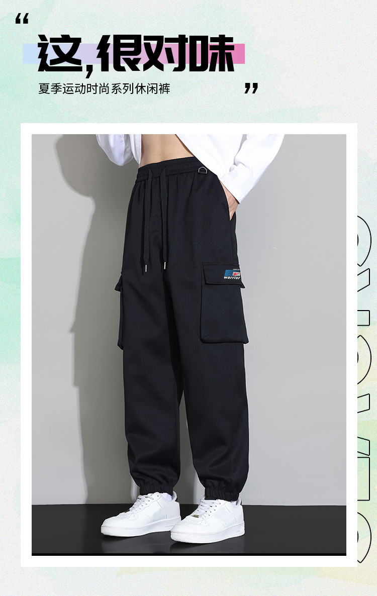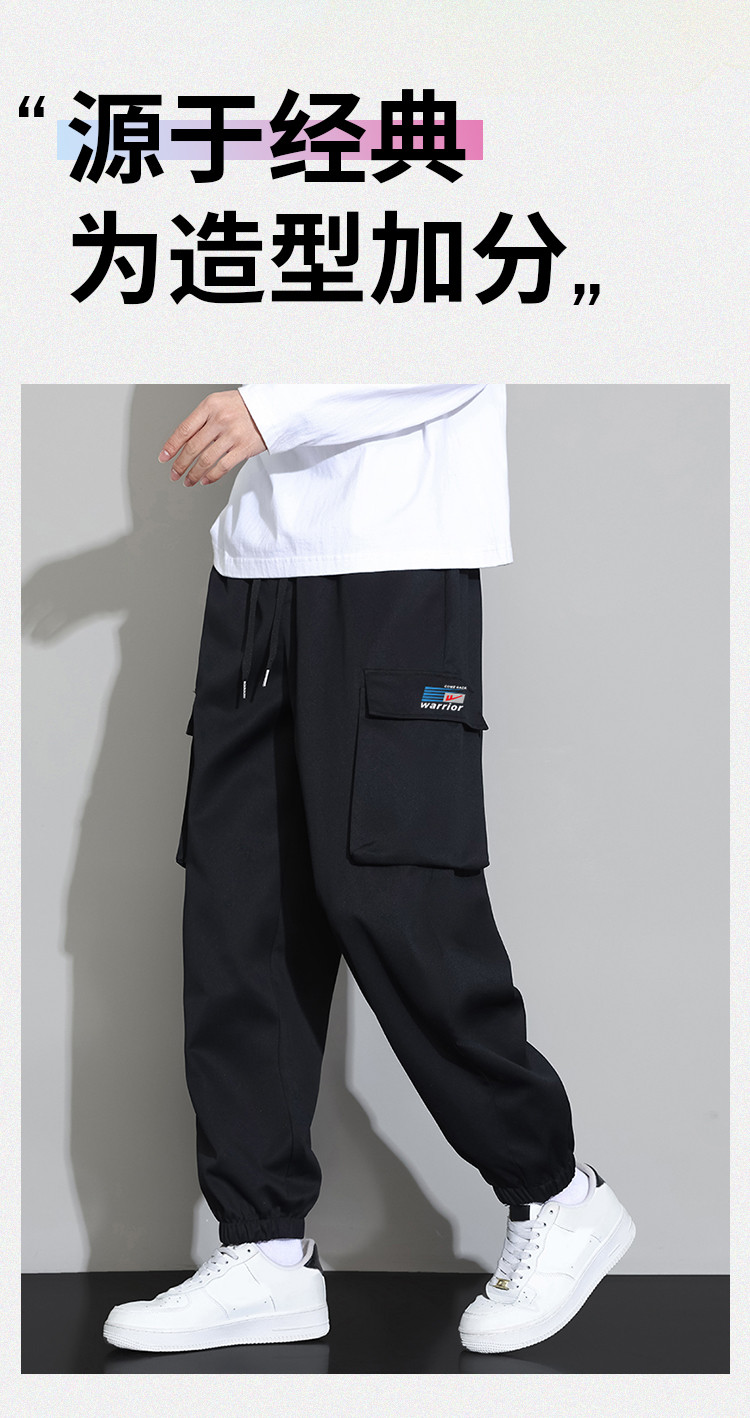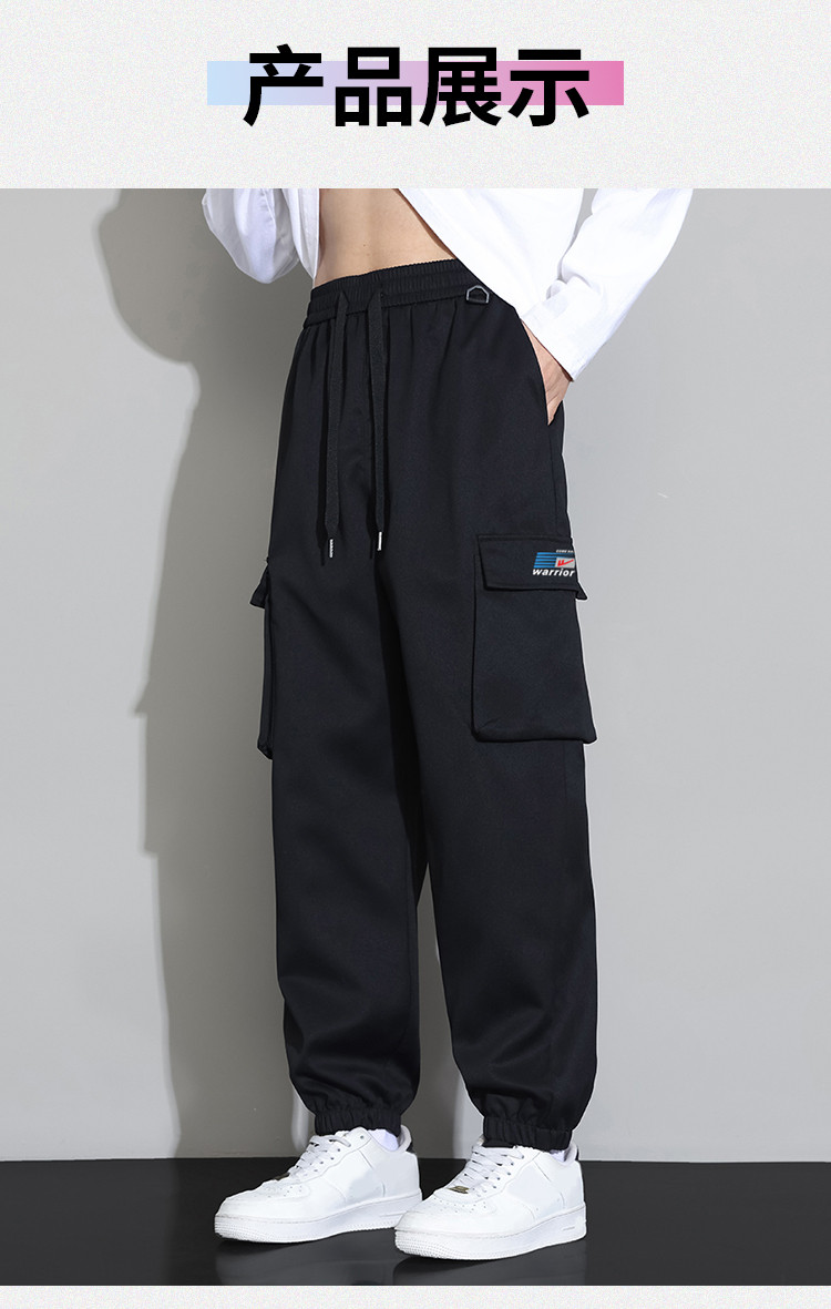 商品名称:秋季新款工装裤百搭宽松休闲裤子男简约舒适秋季抽绳束脚裤小脚裤 181011