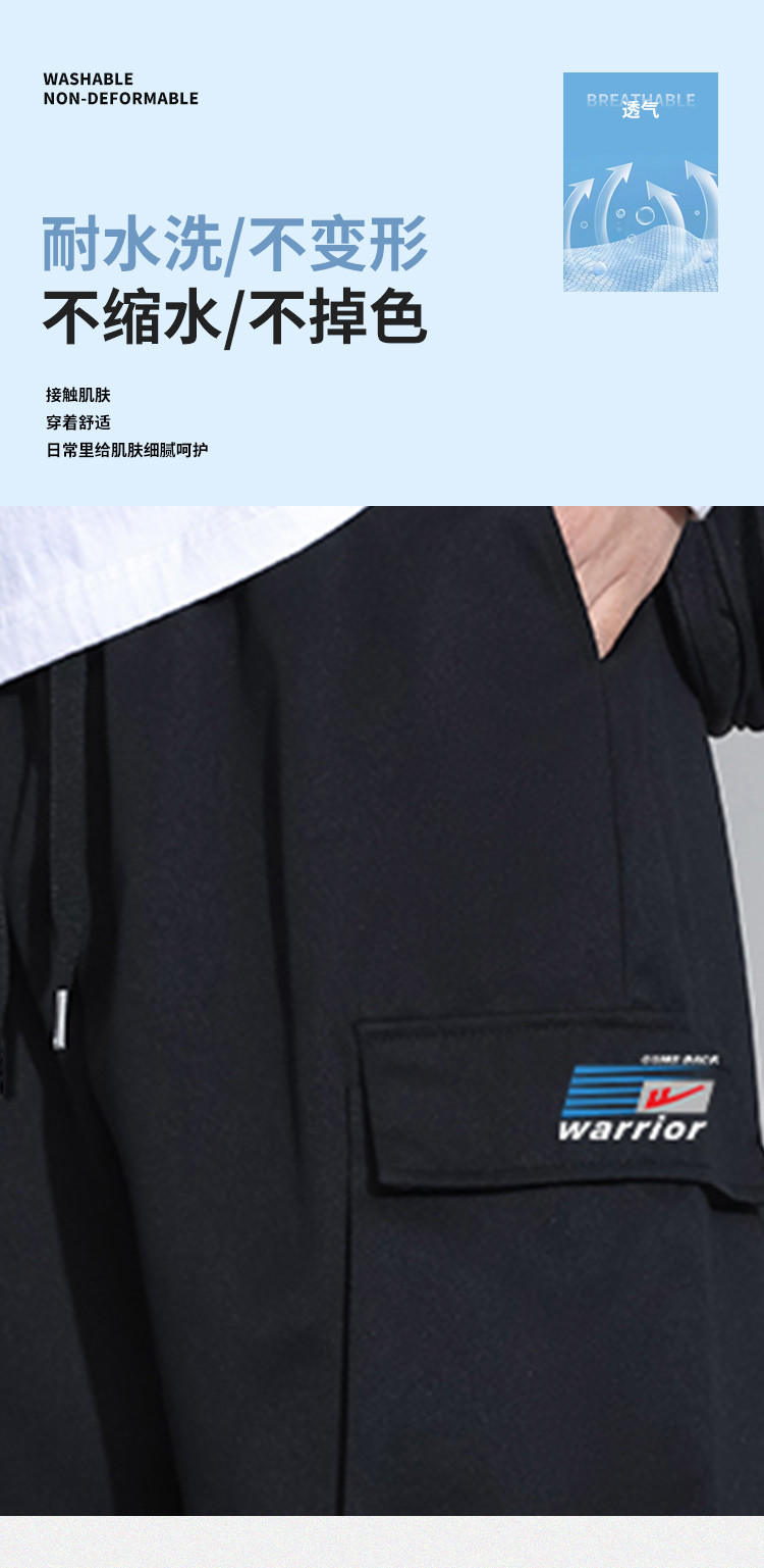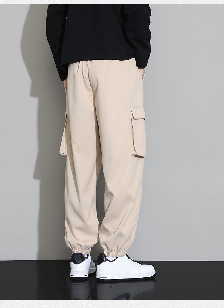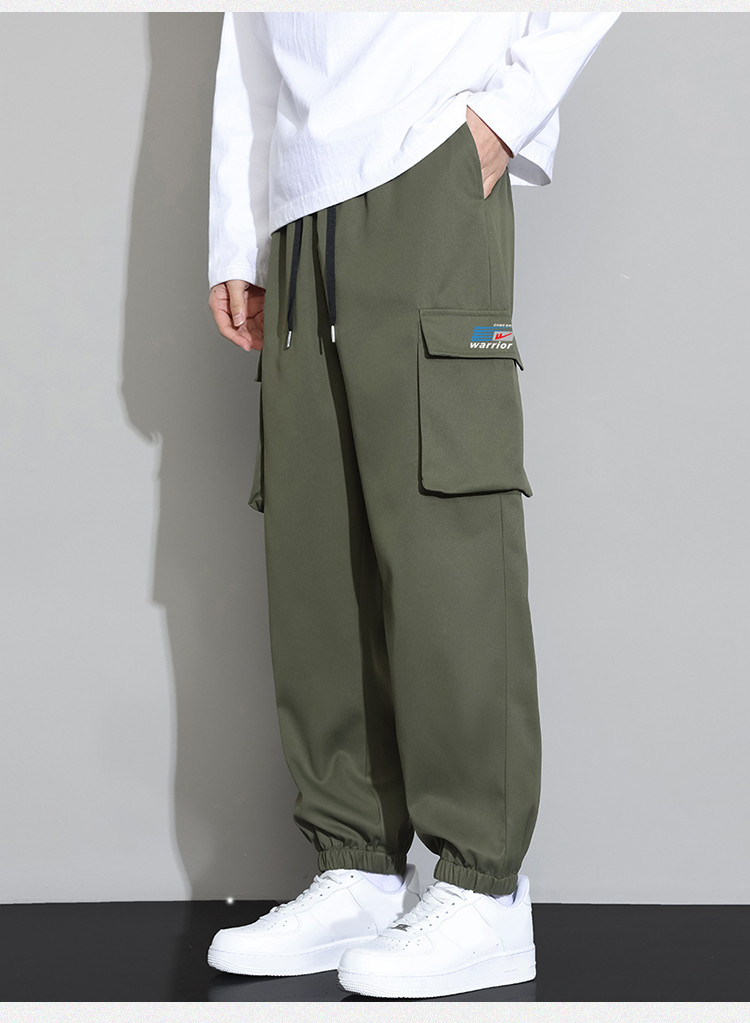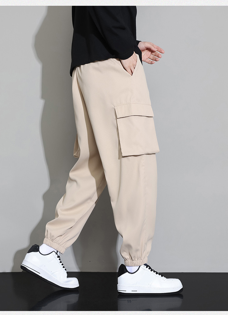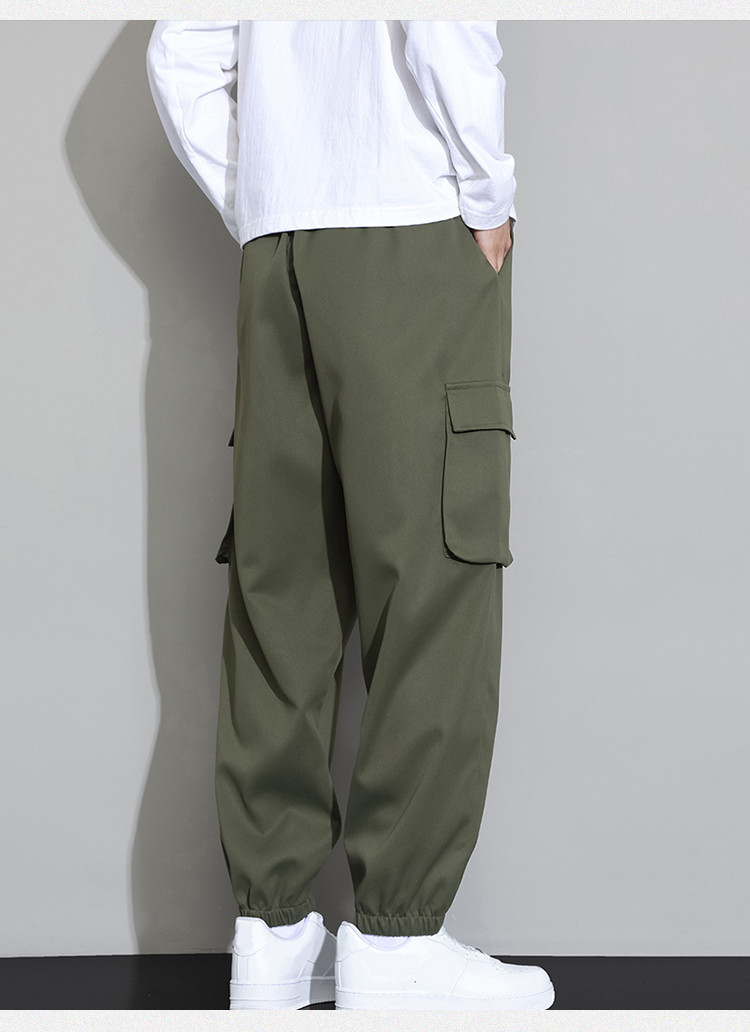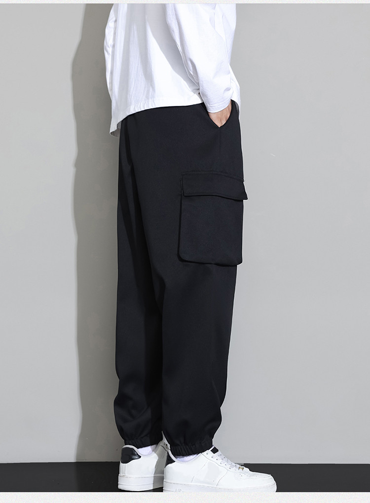 商品名称:秋季新款工装裤百搭宽松休闲裤子男简约舒适秋季抽绳束脚裤小脚裤 181011