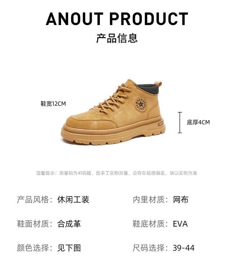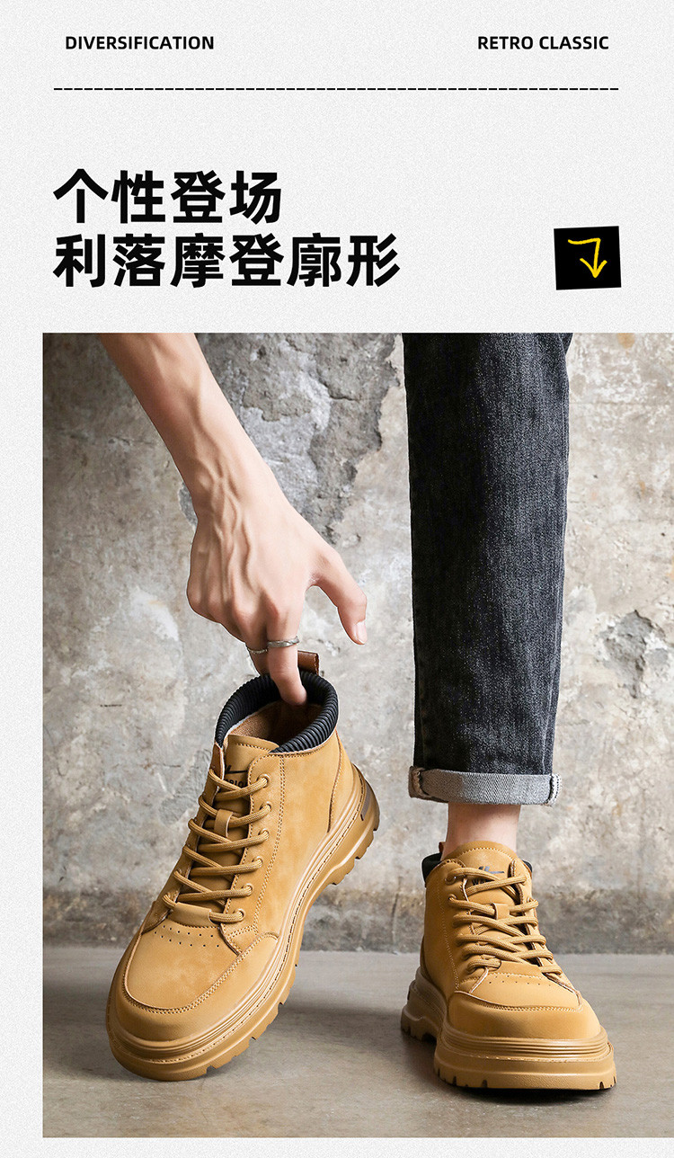 商品名称:【春季热卖】复古工装风马丁靴男短靴轻便舒适登山鞋大黄靴男士鞋 786077