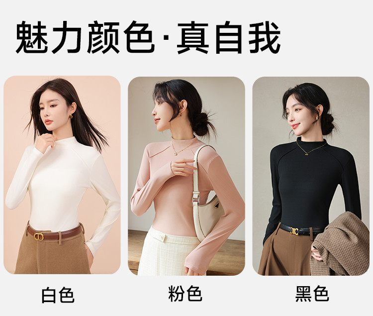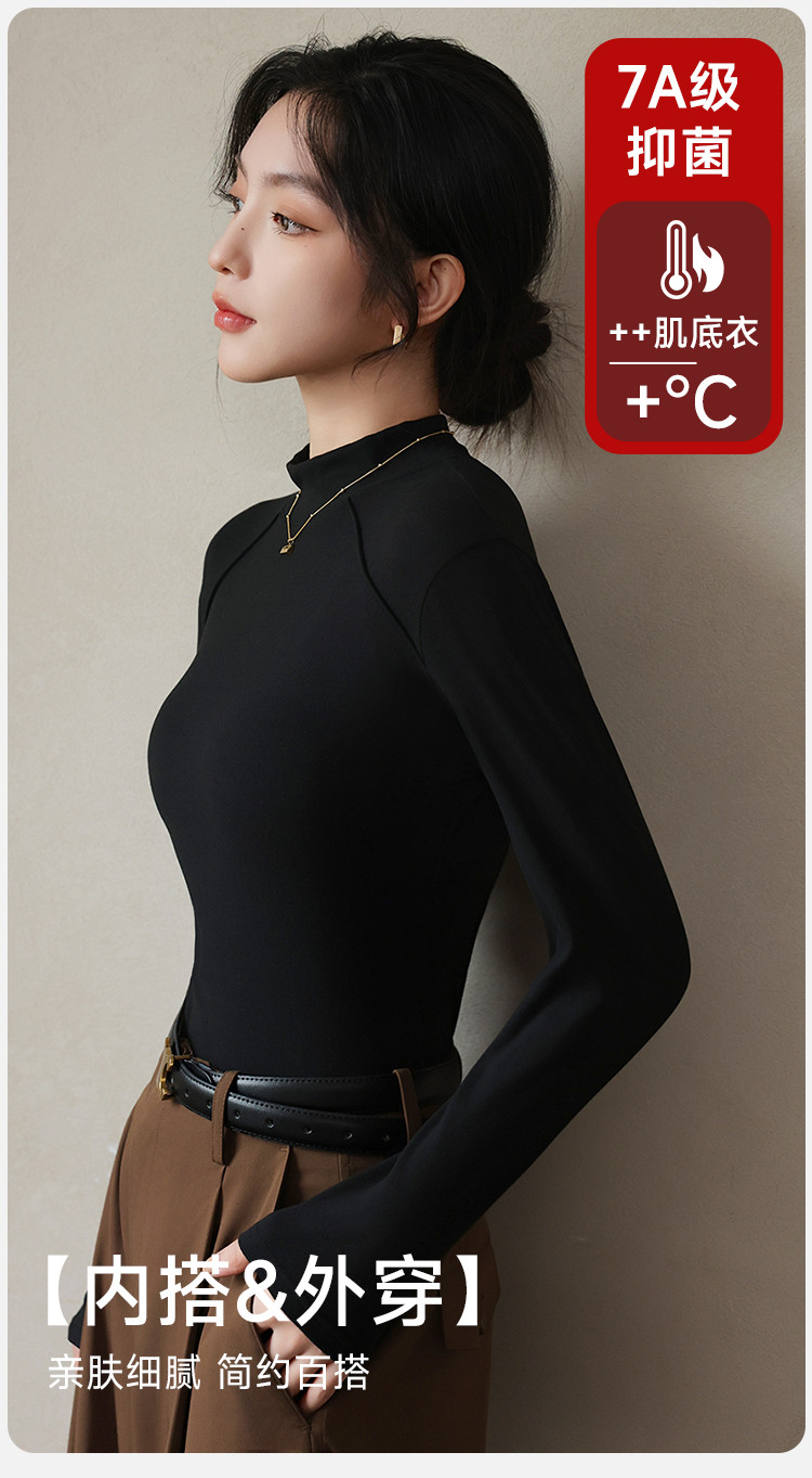 商品名称:【阳离子7A抗菌】秋冬新款长袖打底衫女可外穿半高领保暖上衣女 703755