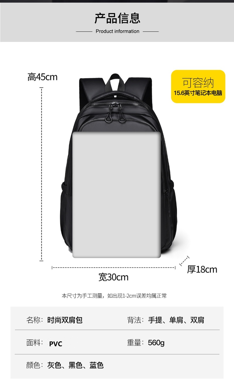 商品名称:彤彤兔 休闲双肩包男士简约15.6寸电脑背包防泼大容量学生背包
