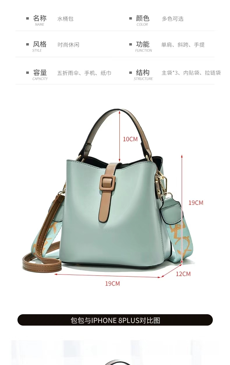 商品名称:彤彤兔 包包女光面手提水桶包韩版质感单肩斜跨包女时尚