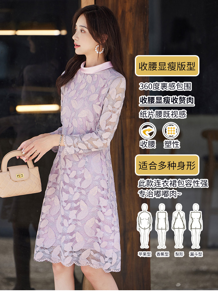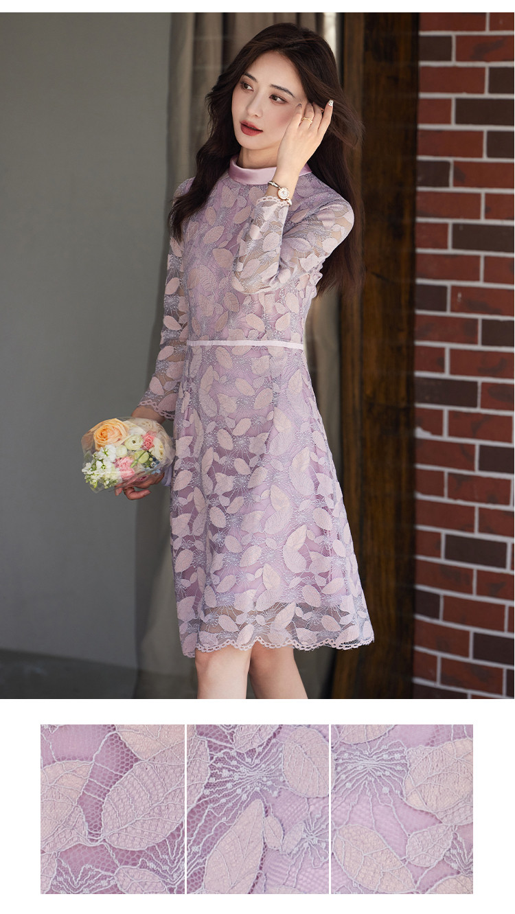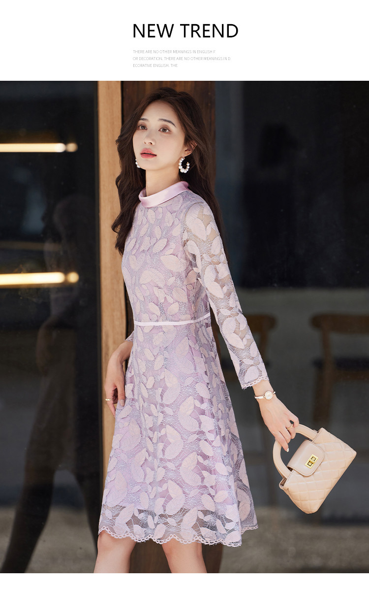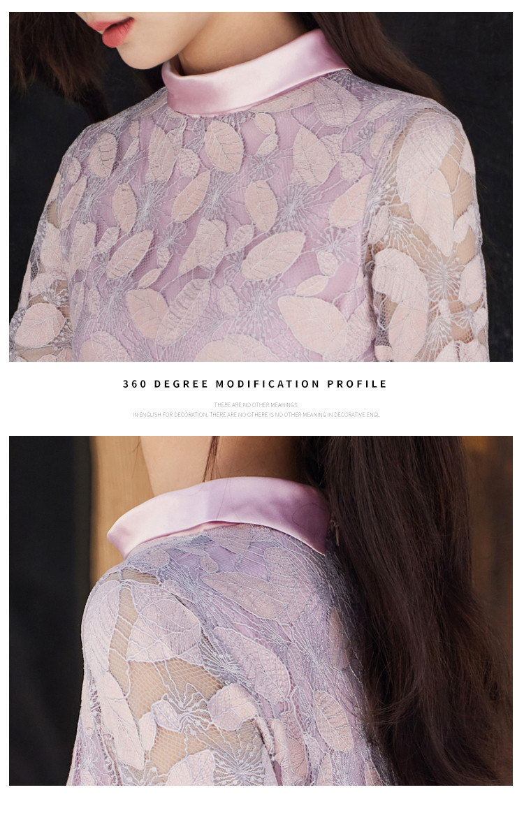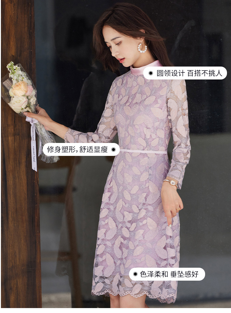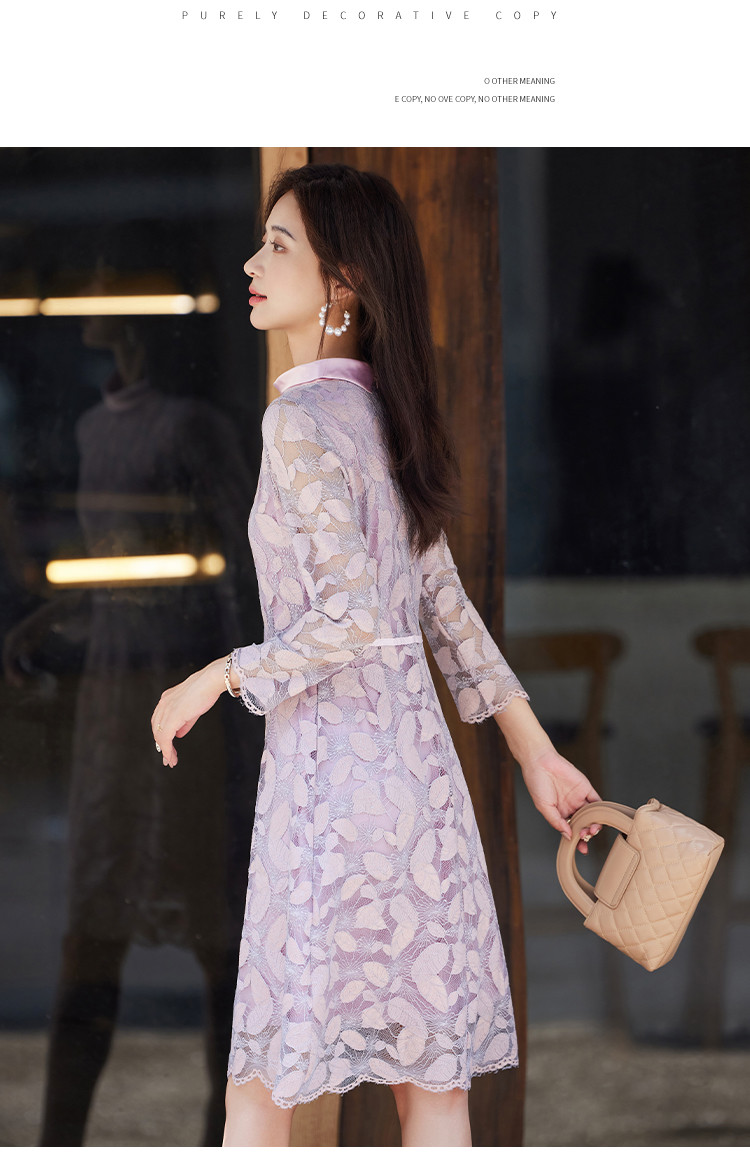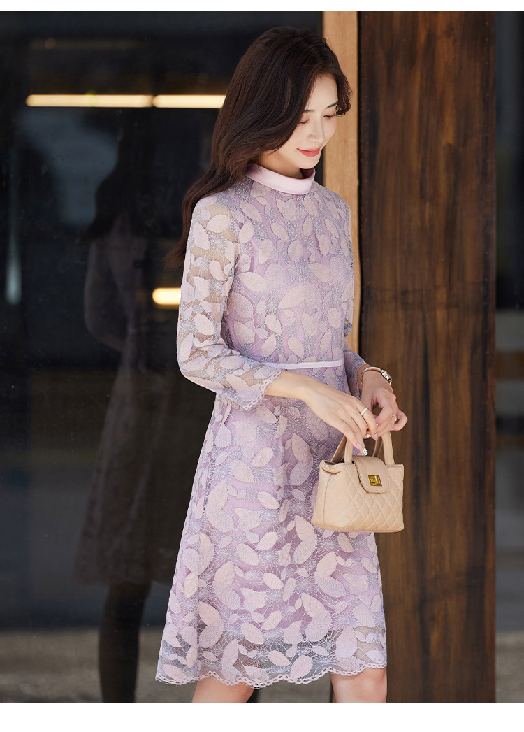 商品名称:淑女气质春装百搭时尚优雅立领修身七分袖连衣裙 340376