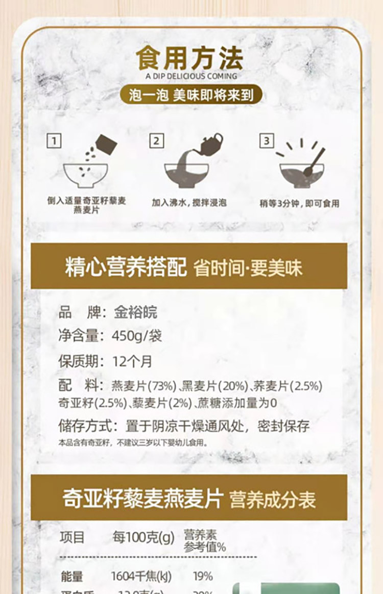 商品名称:金裕皖奇亚籽燕麦片400克/袋奇亚籽藜麦片成人营养代餐燕麦片早餐