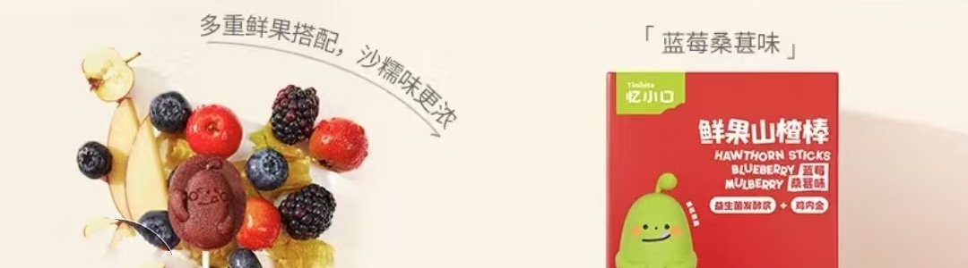 商品名称:英氏 忆小口 (Tinibite) 鲜果山楂棒(蓝莓桑葚味)63g
