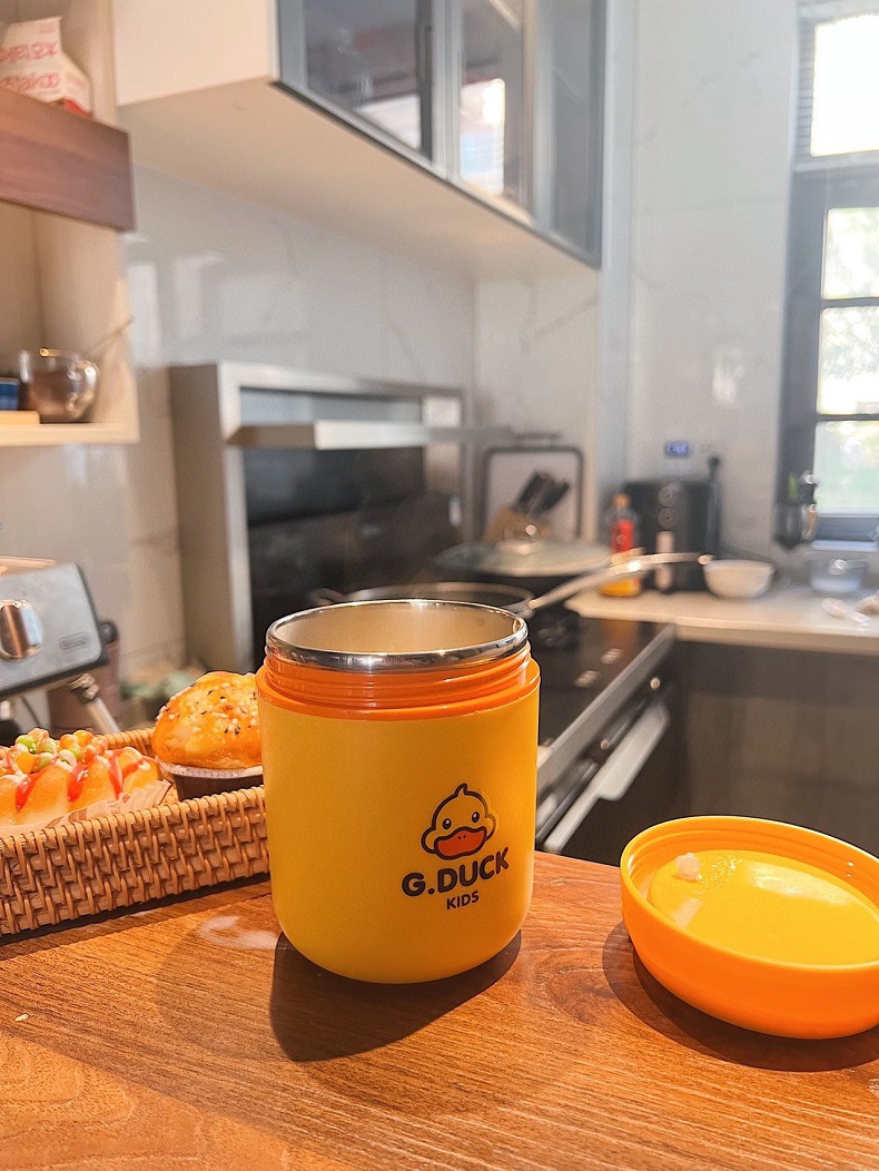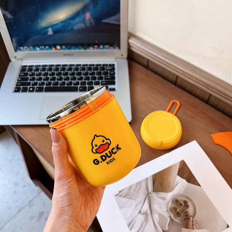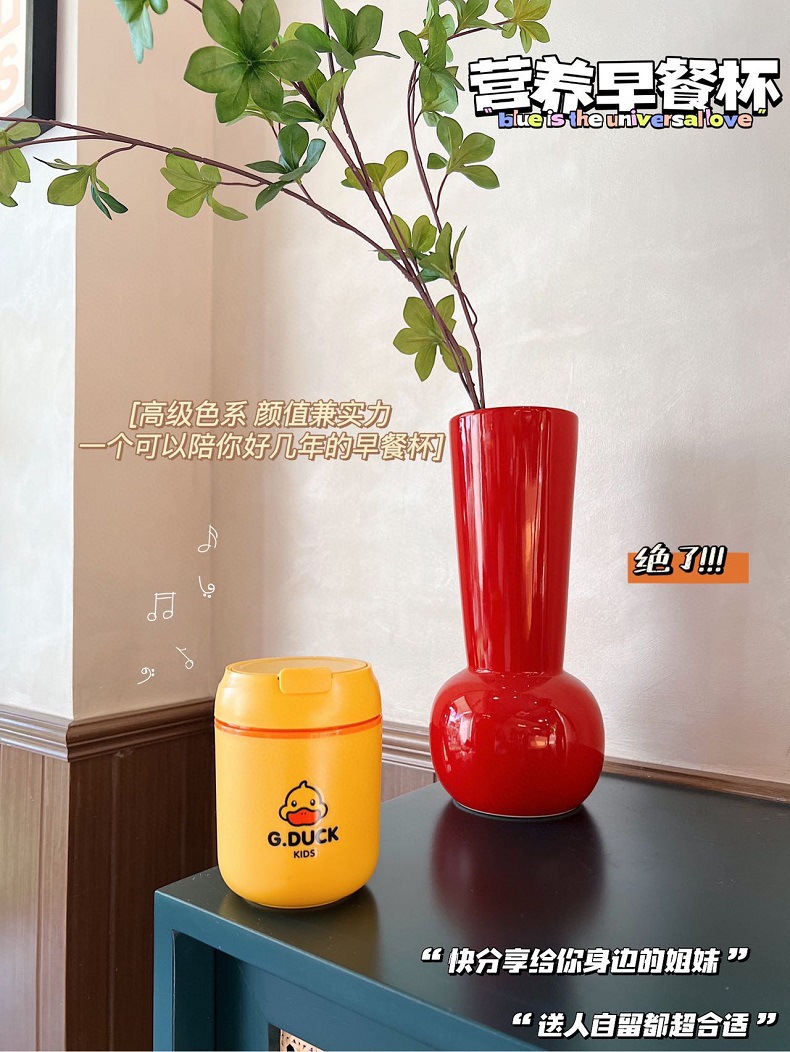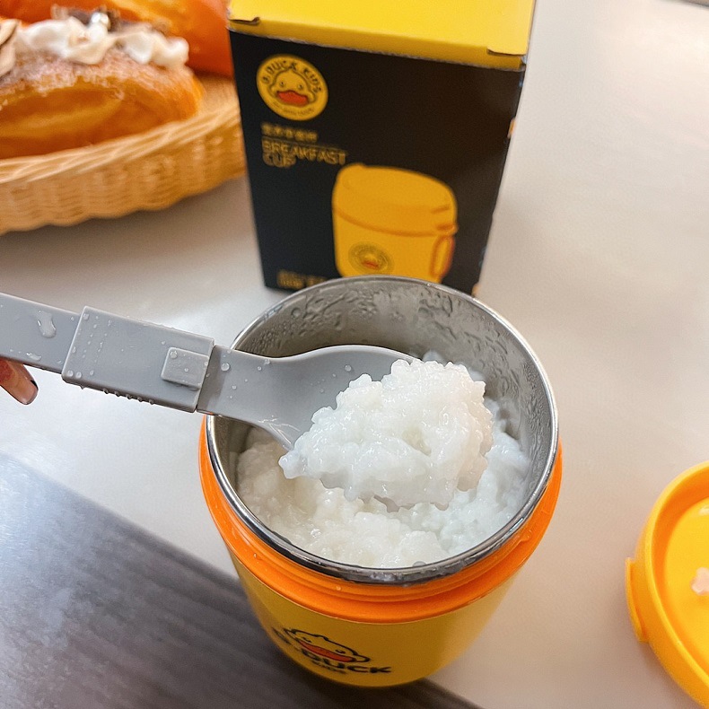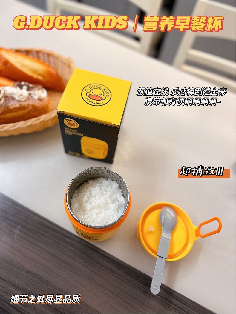 G DUCK燕麦不锈钢早餐杯带盖塑料粥杯学生密封便携带勺咖啡随身杯厨房家用