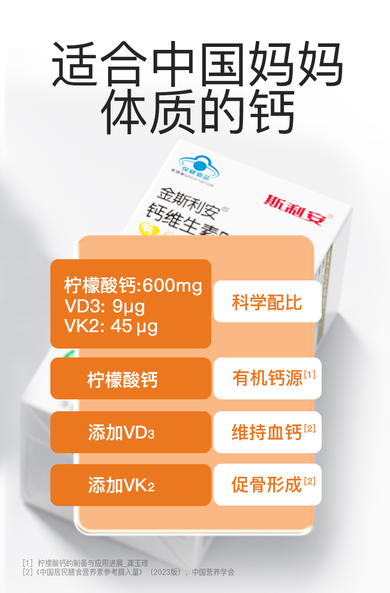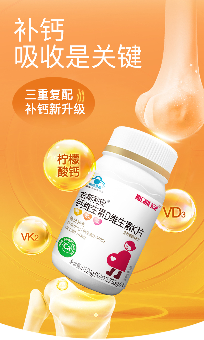 【品牌直供】斯利安scrianen孕妇钙孕期哺乳期柠檬酸钙K2维生素D3易吸收成人钙90片