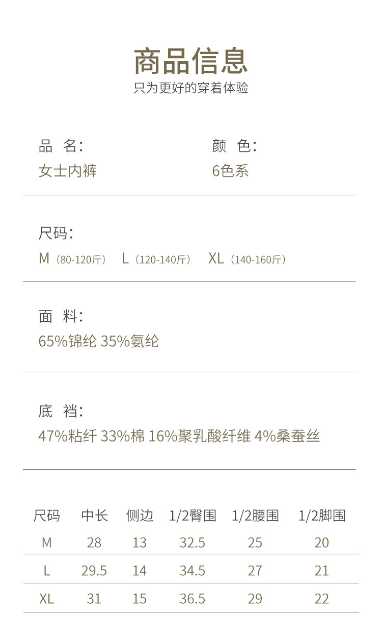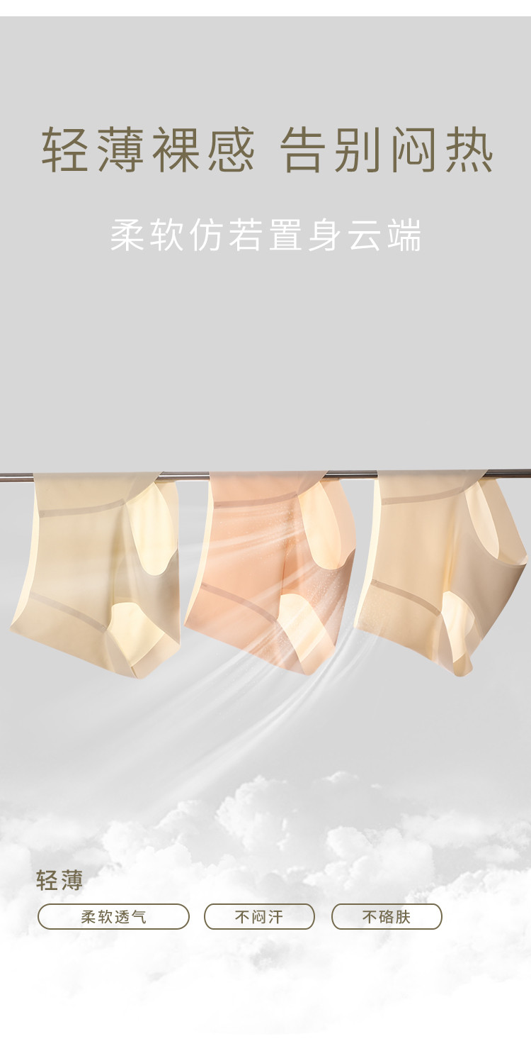 商品名称:【含蚕丝7A级抑菌裆】3双装女士内裤春夏款舒适透气无痕内裤 492811