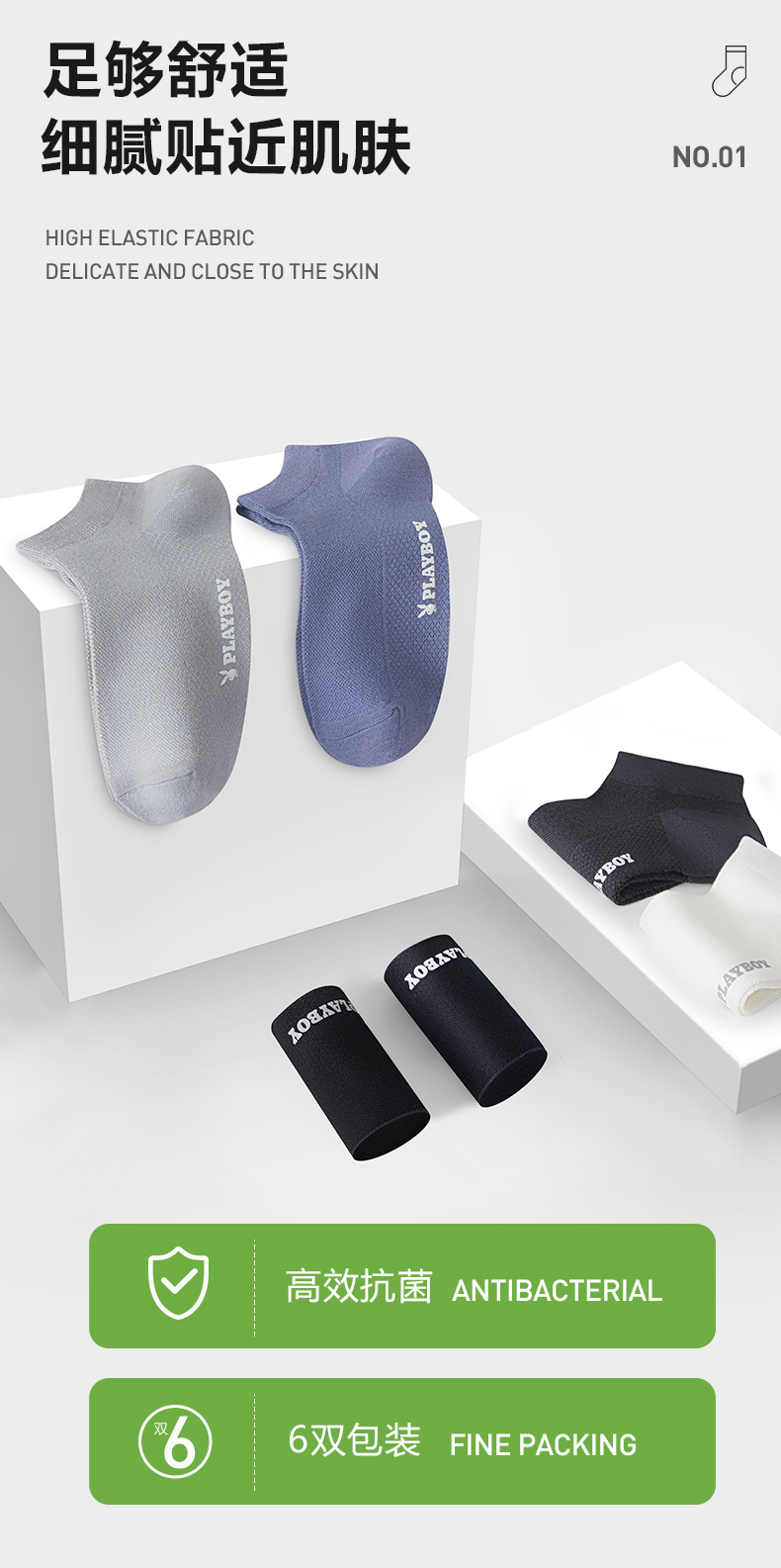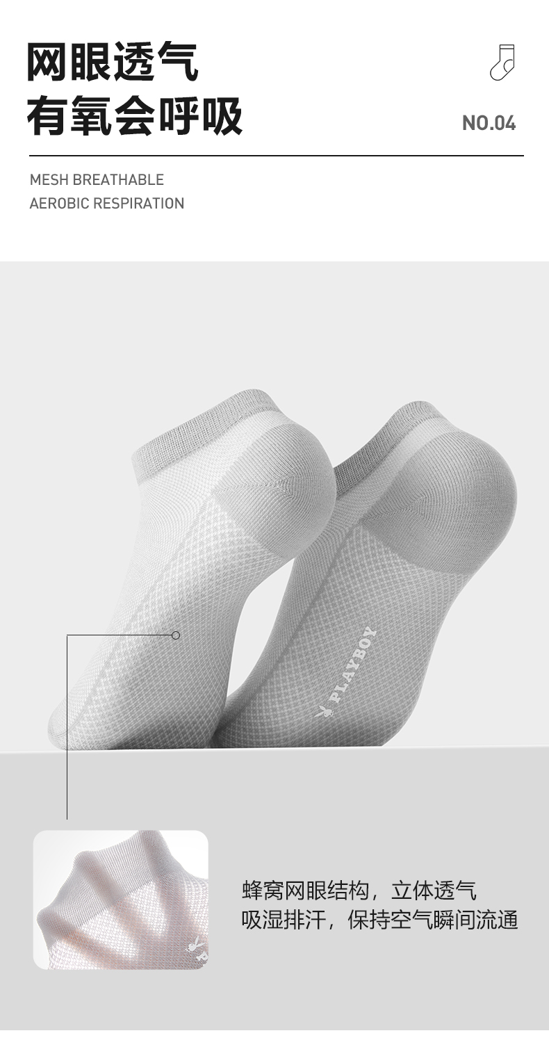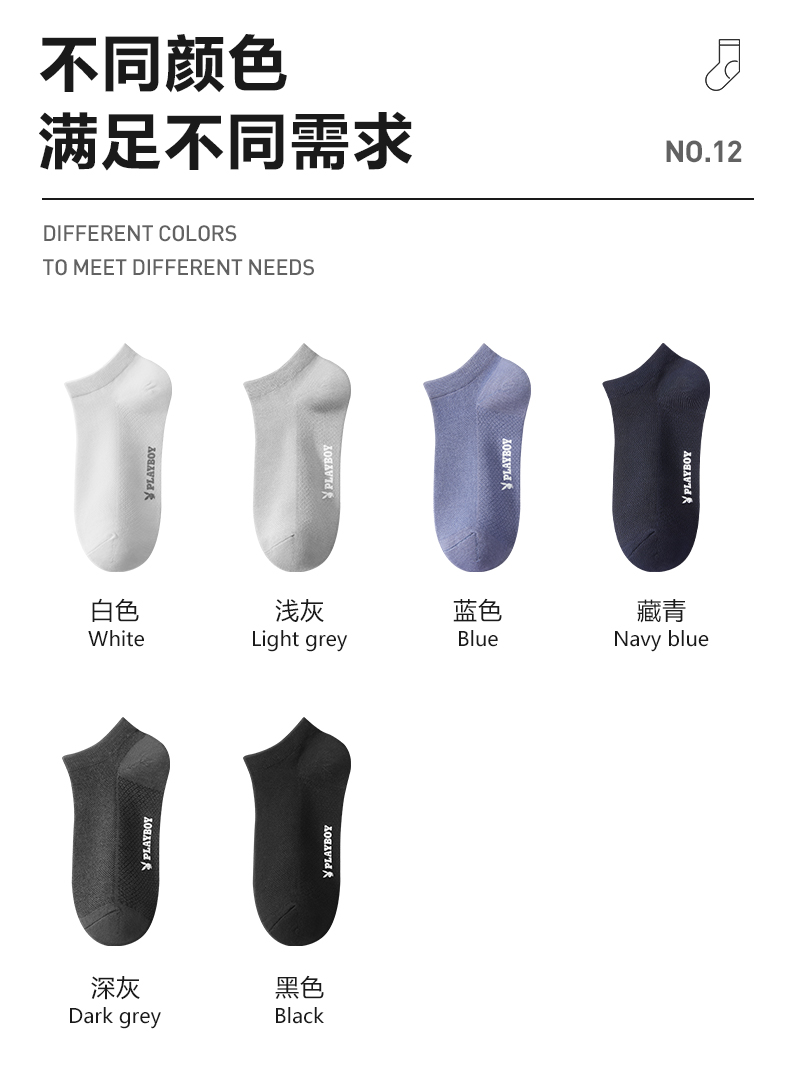 商品名称:【品牌直供】花花公子6双装男士袜子夏季竹纤维天然防臭吸汗运动船袜男袜夏天短袜