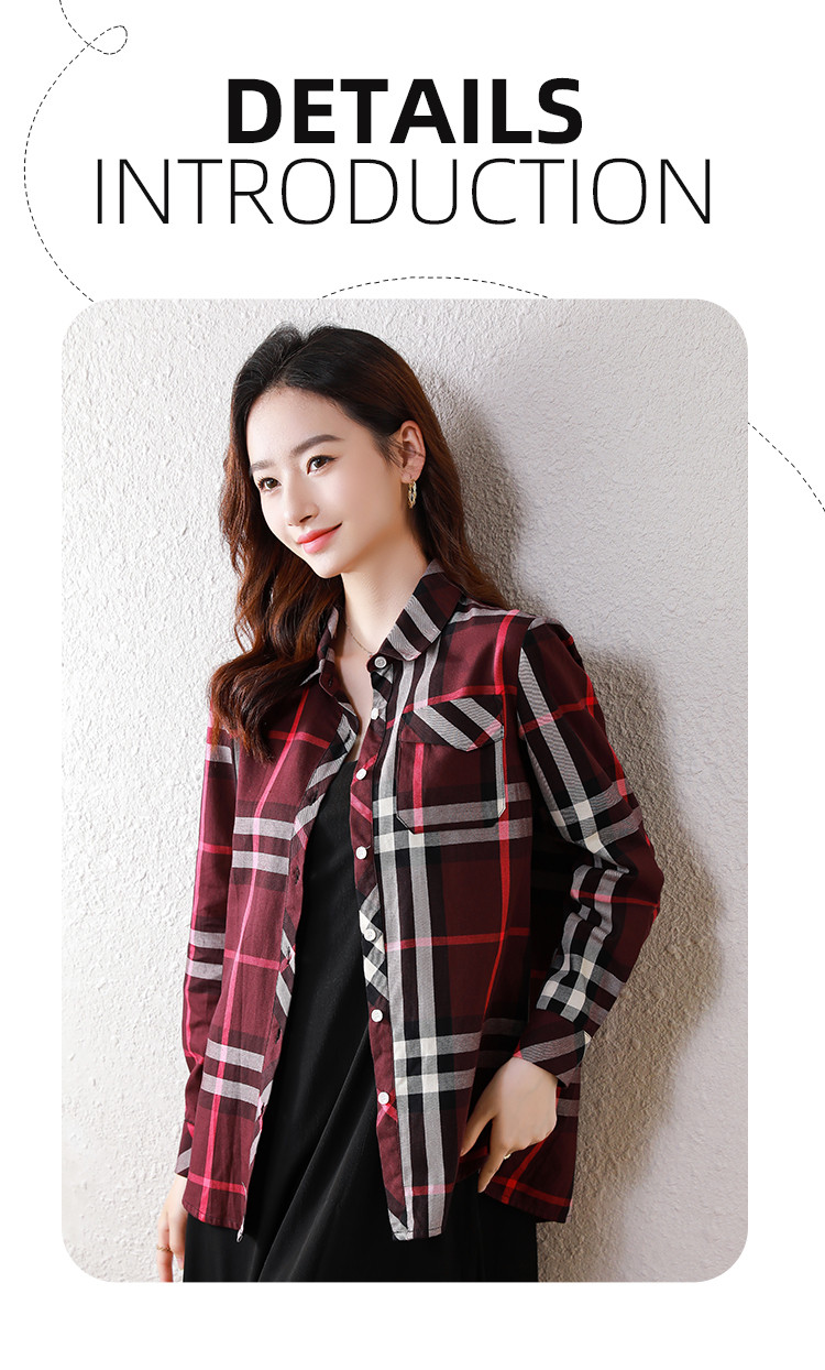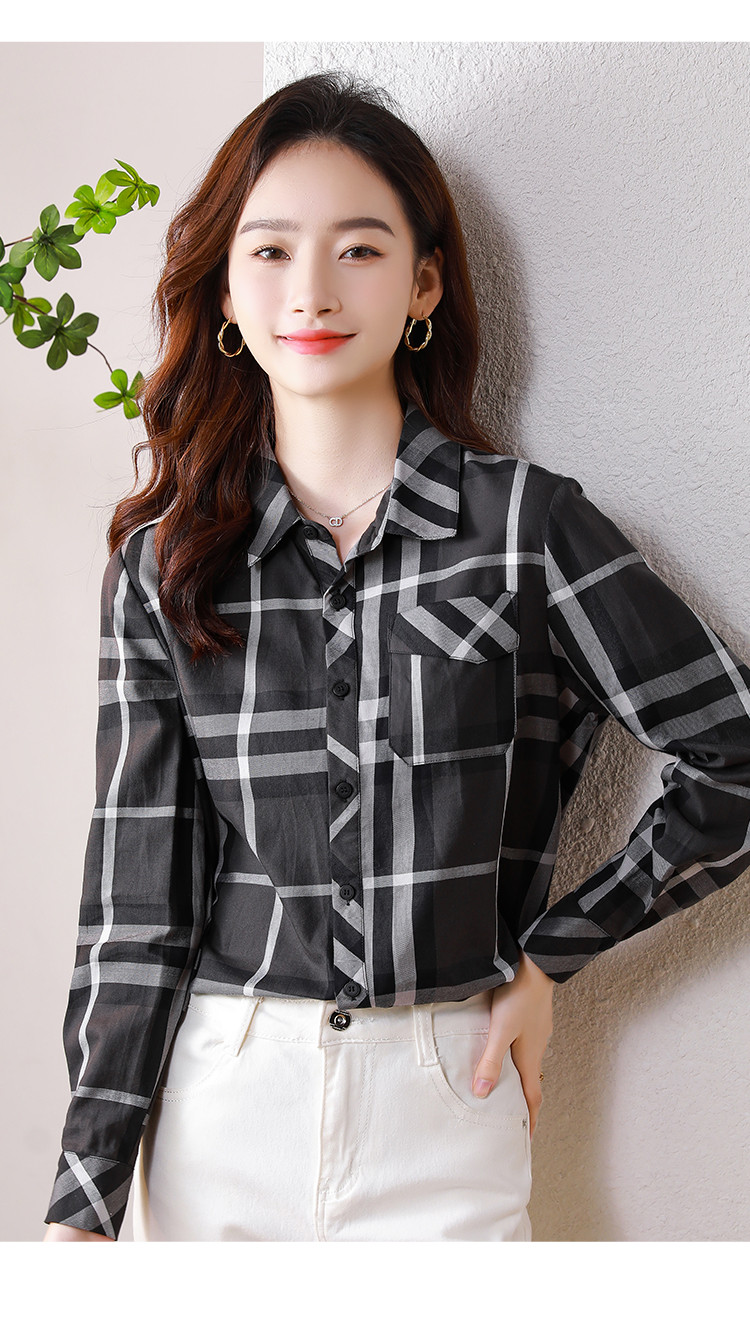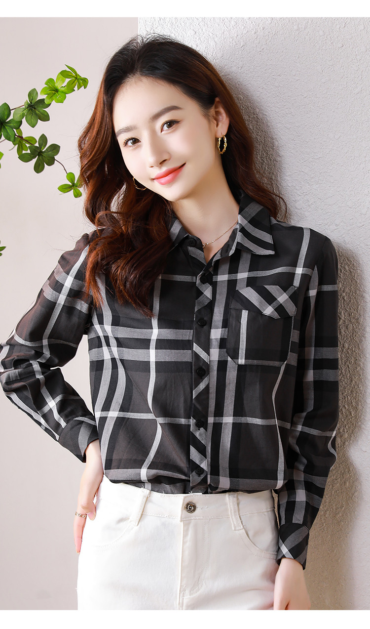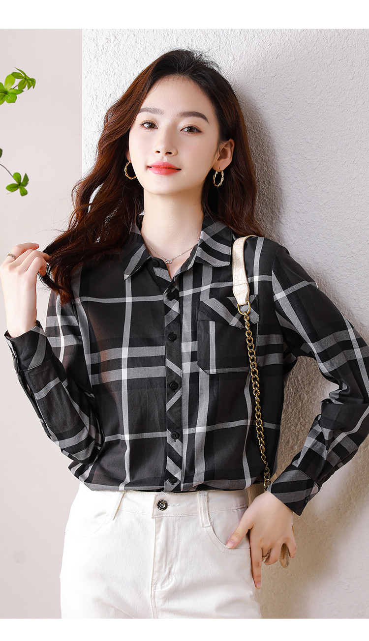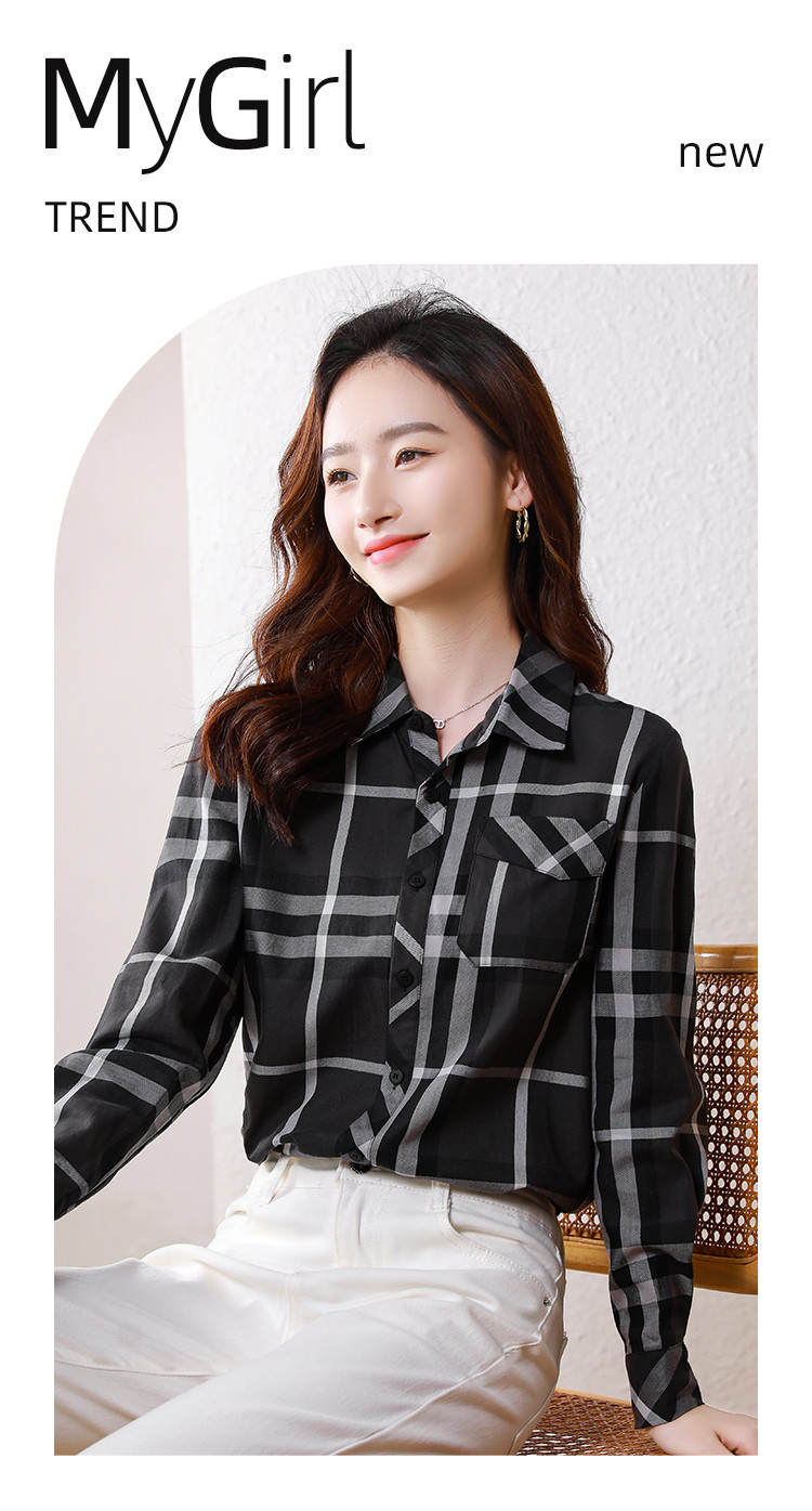 商品名称:格子长袖衬衫女春季宽松休闲小众设计感时尚衬衣 077144