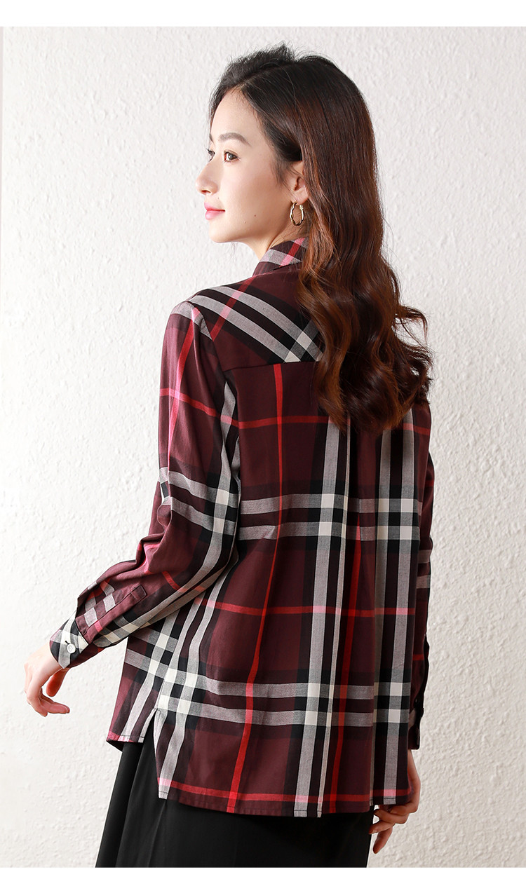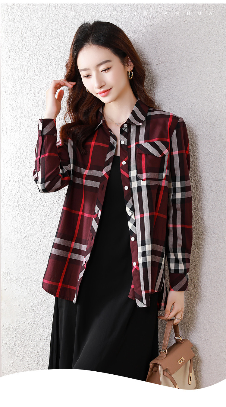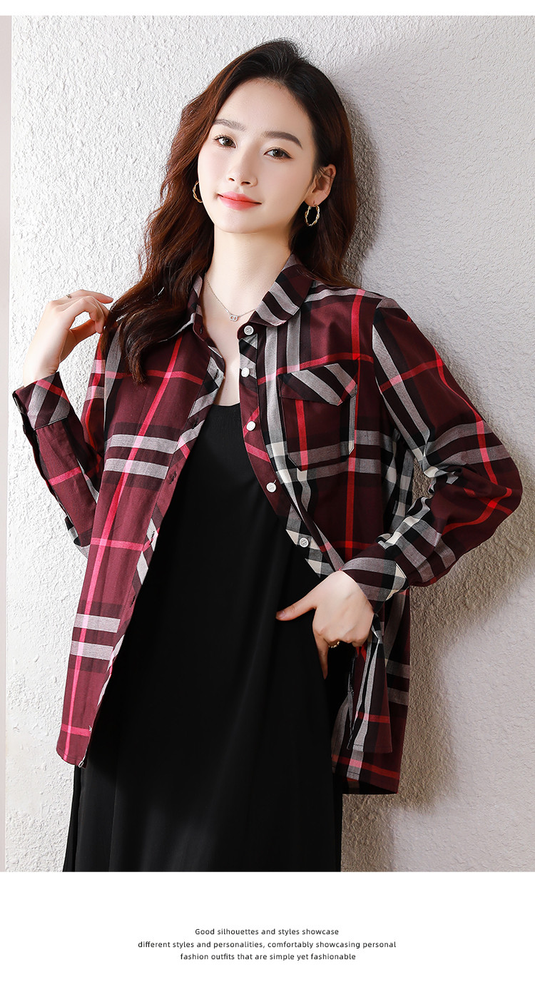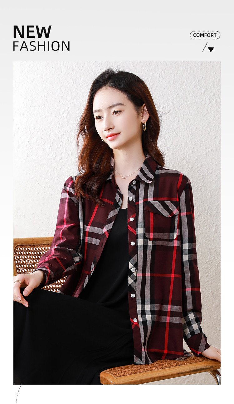 商品名称:格子长袖衬衫女春季宽松休闲小众设计感时尚衬衣 077144