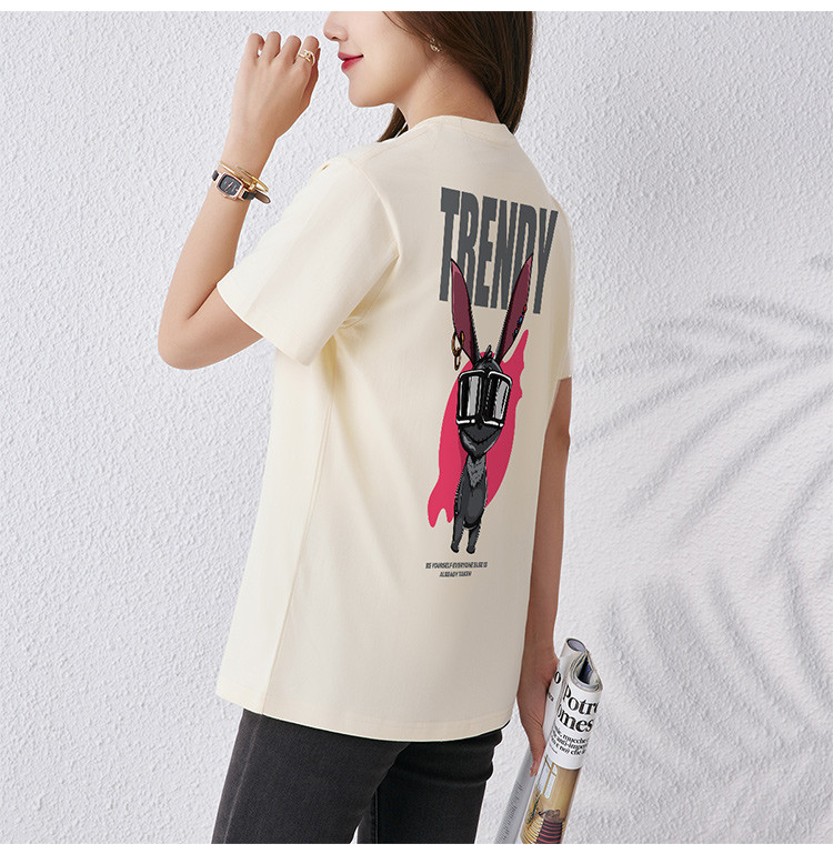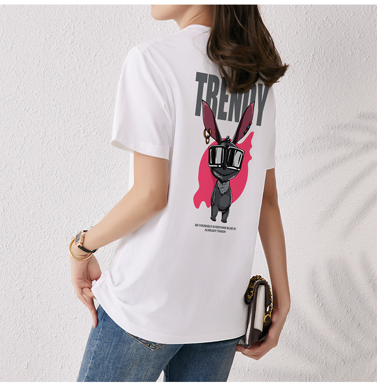 商品名称:【女装】夏季纯棉短袖t恤印花百搭运动休闲女式上衣圆领体恤 780691
