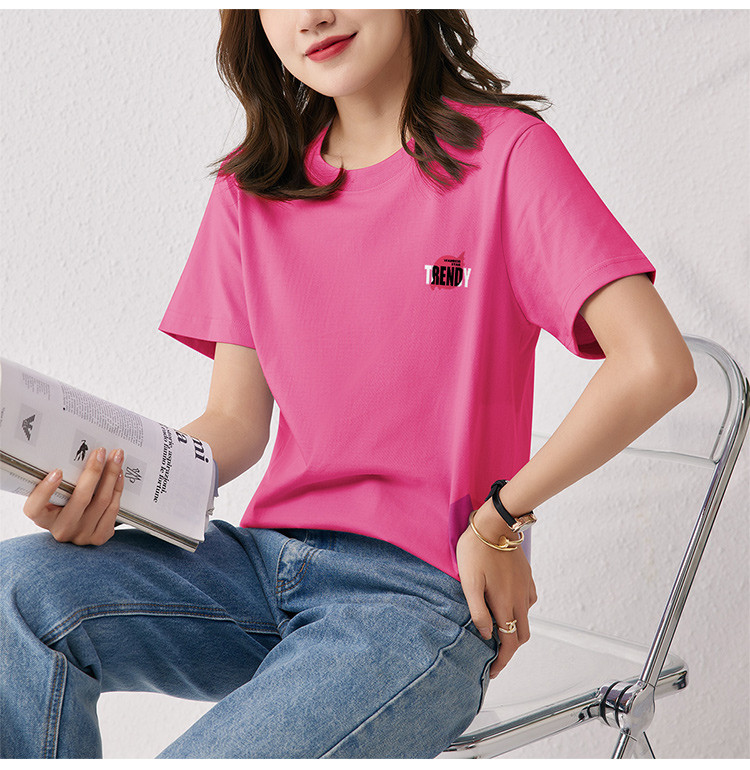 【女装】夏季纯棉短袖t恤印花百搭运动休闲女式上衣圆领体恤 780691