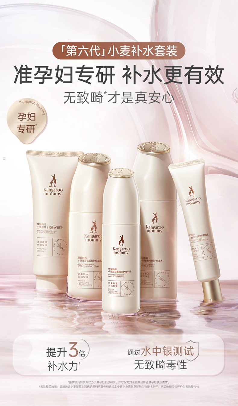 【品牌直供】袋鼠妈妈准孕妇小麦护肤品补水保湿化妆品可用洁面水乳隔离精华单支发货
