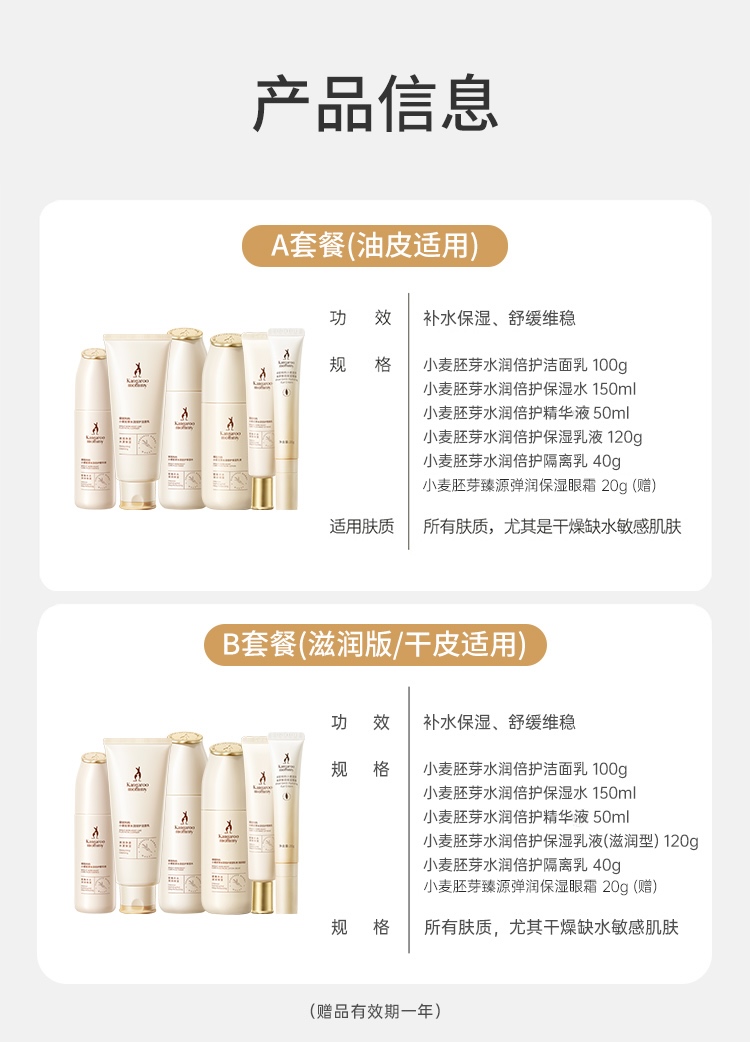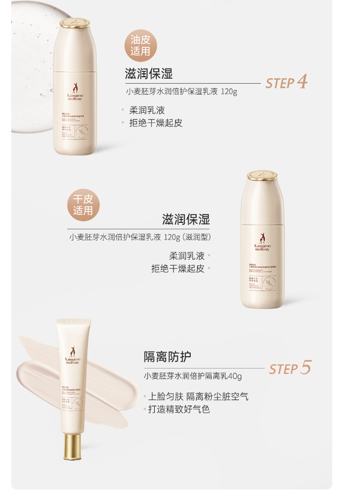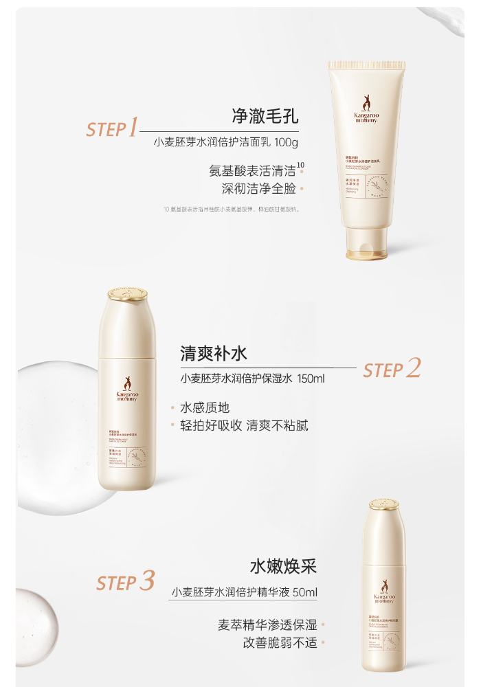 商品名称:【品牌直供】袋鼠妈妈准孕妇小麦护肤品补水保湿化妆品可用洁面水乳隔离精华单支发货