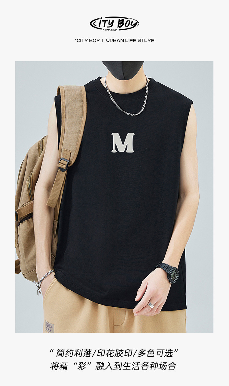 商品名称:【100%棉】背心马甲男内穿透气男士无袖t恤宽松潮流运动背心 128083