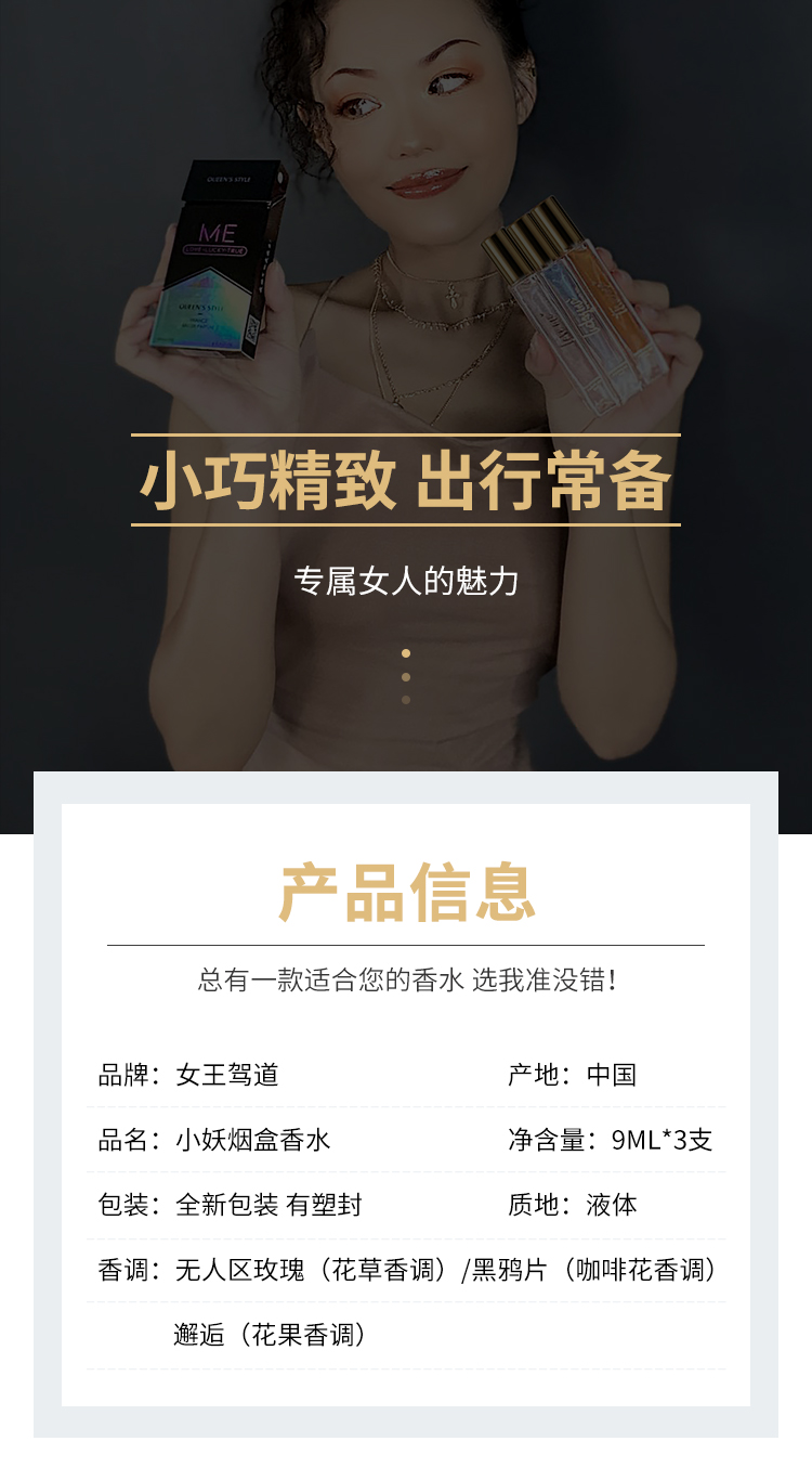 商品名称:【专柜同款】女王驾道小妖烟盒装香水9ml*3支 无人区玫瑰邂逅中性香edp 正装 无喷头