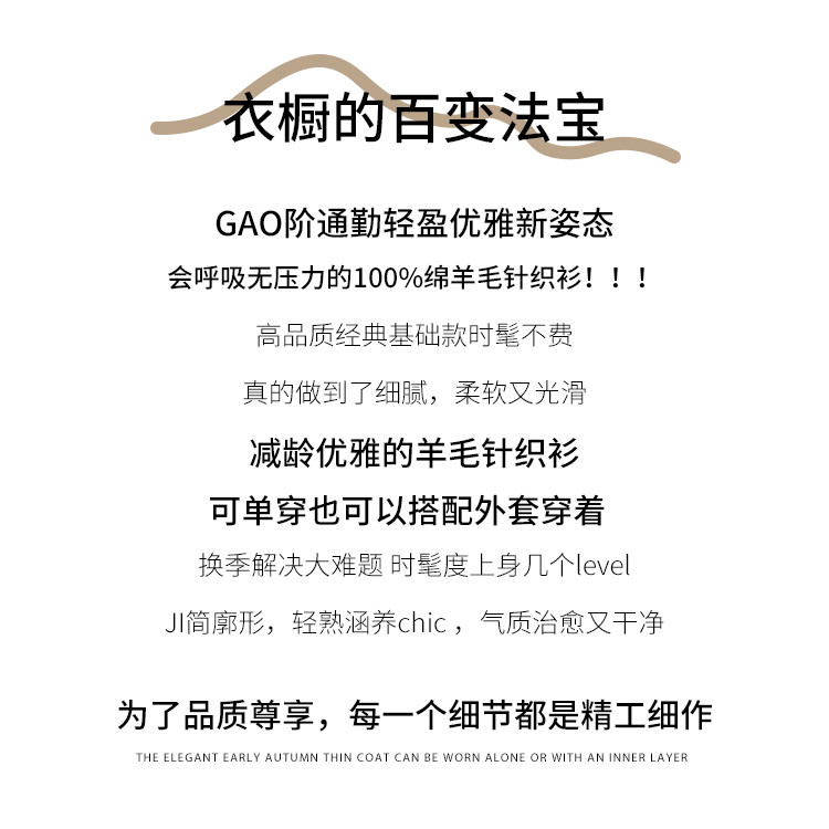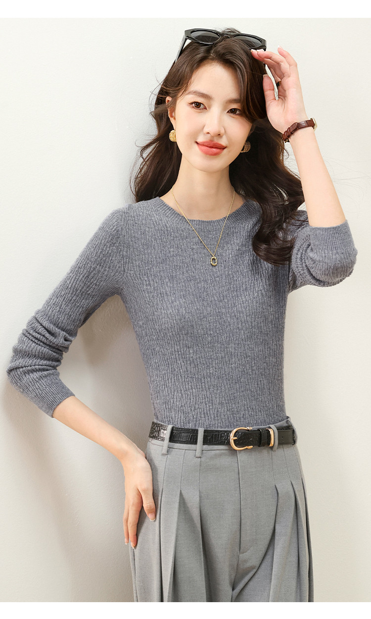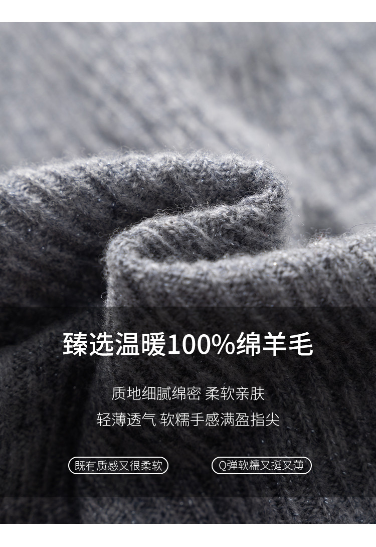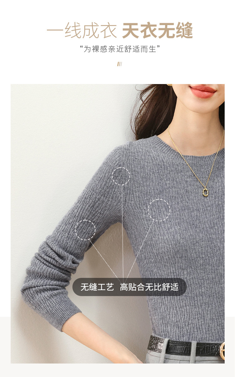 商品名称:【无缝&金丝】圆领纯色修身100%绵羊毛针织衫打底衫羊毛衫女 384787