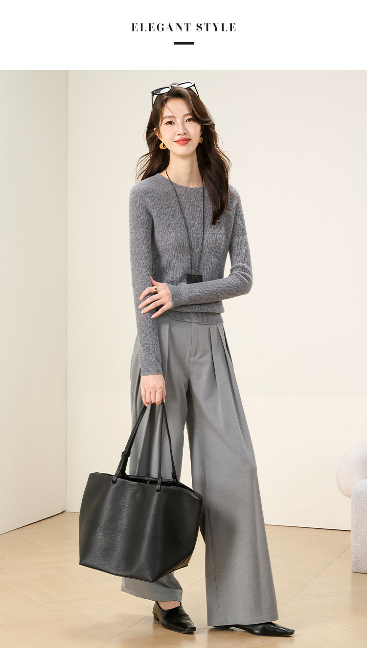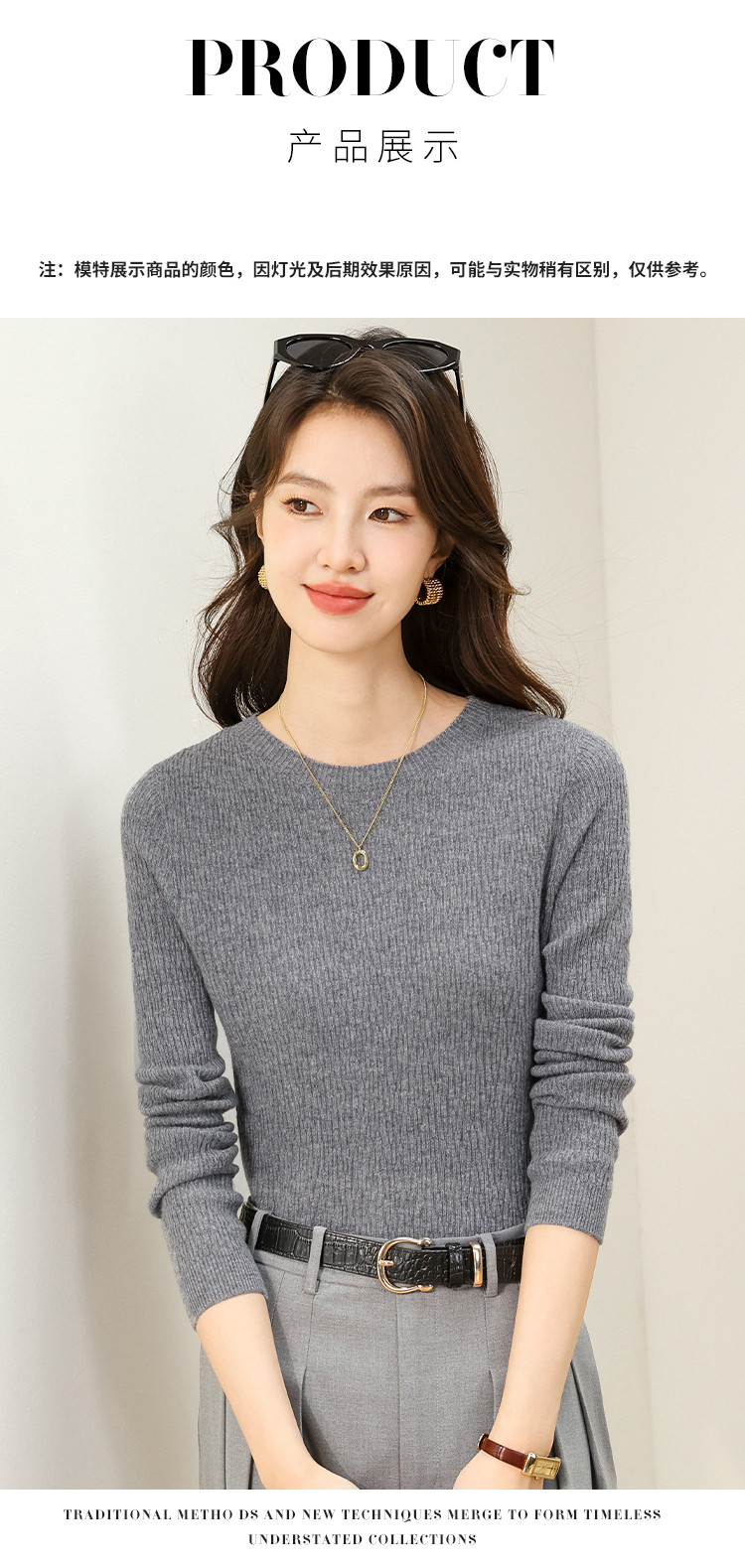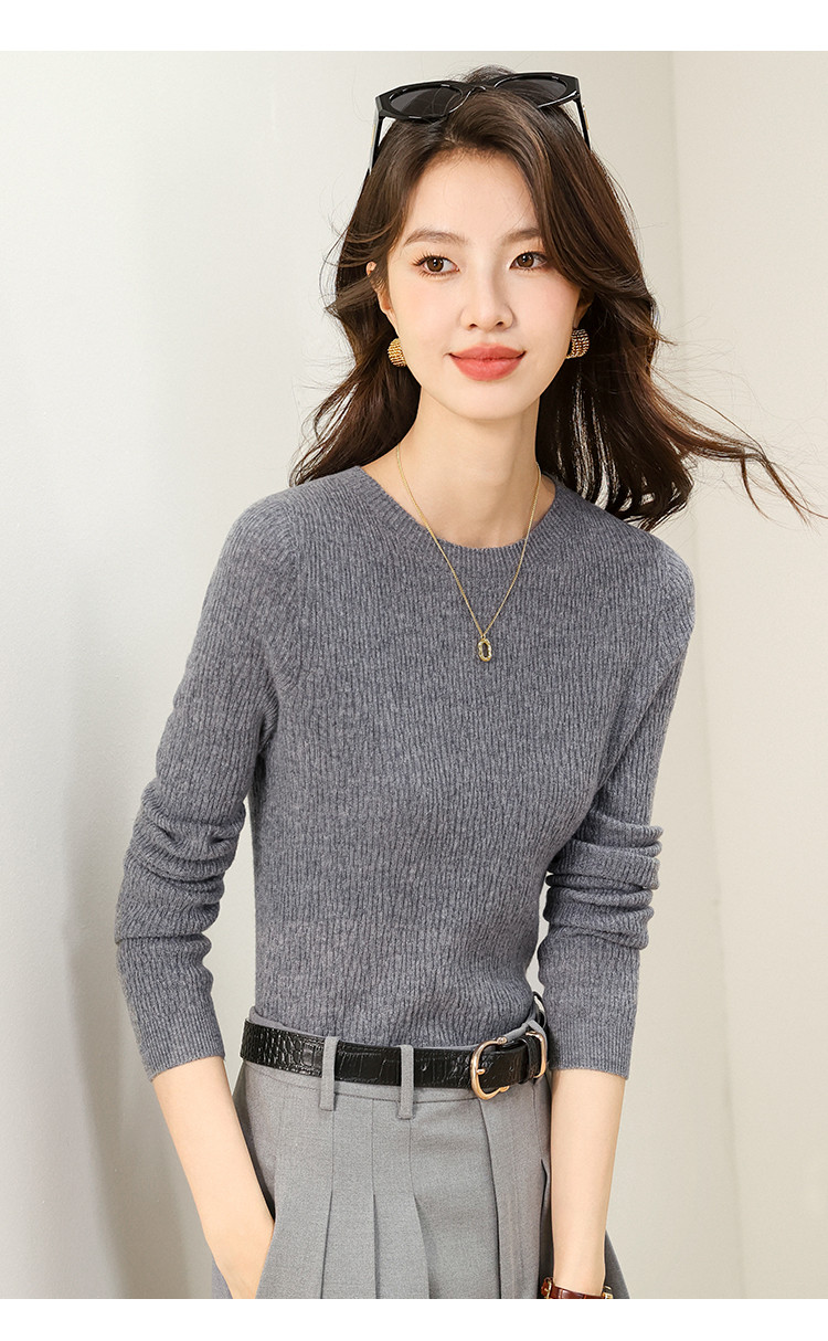 商品名称:【无缝&金丝】圆领纯色修身100%绵羊毛针织衫打底衫羊毛衫女 384787