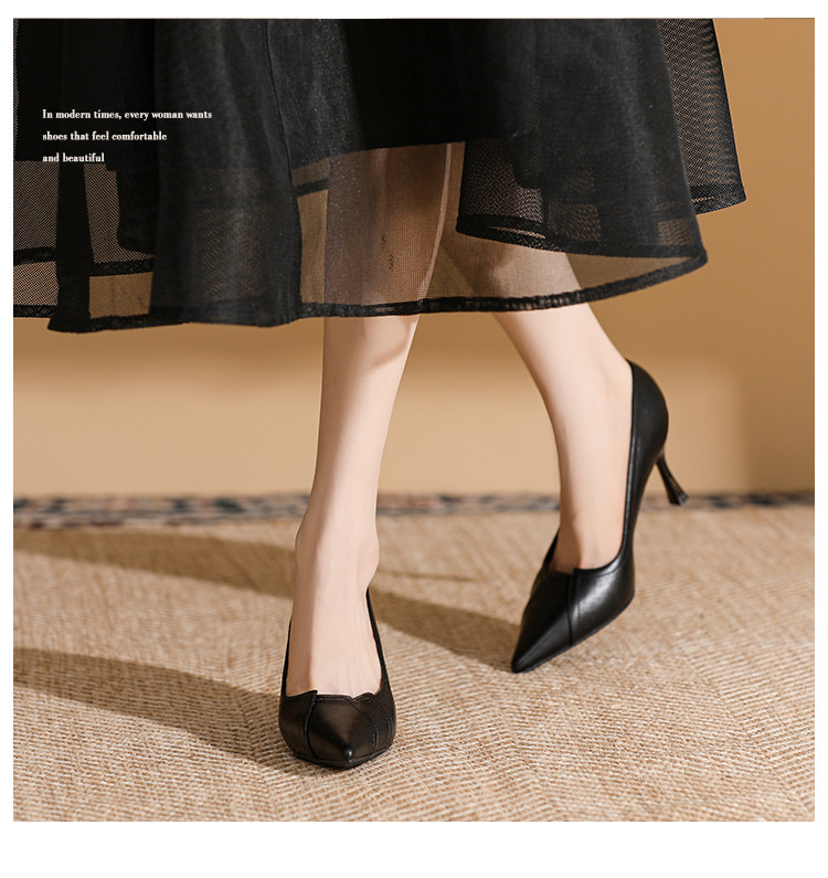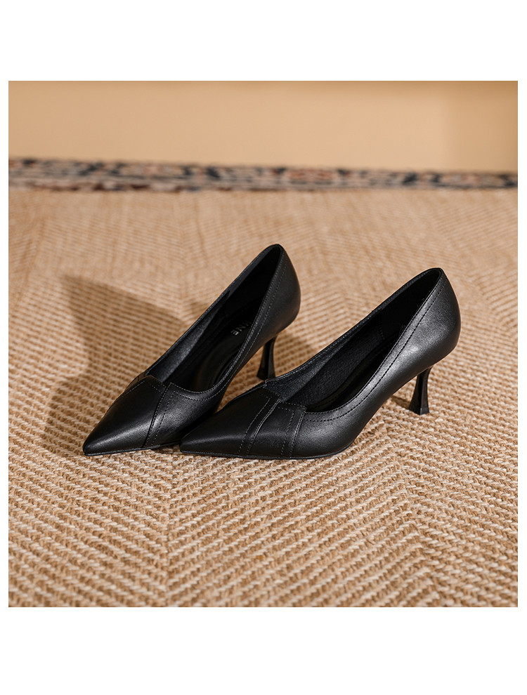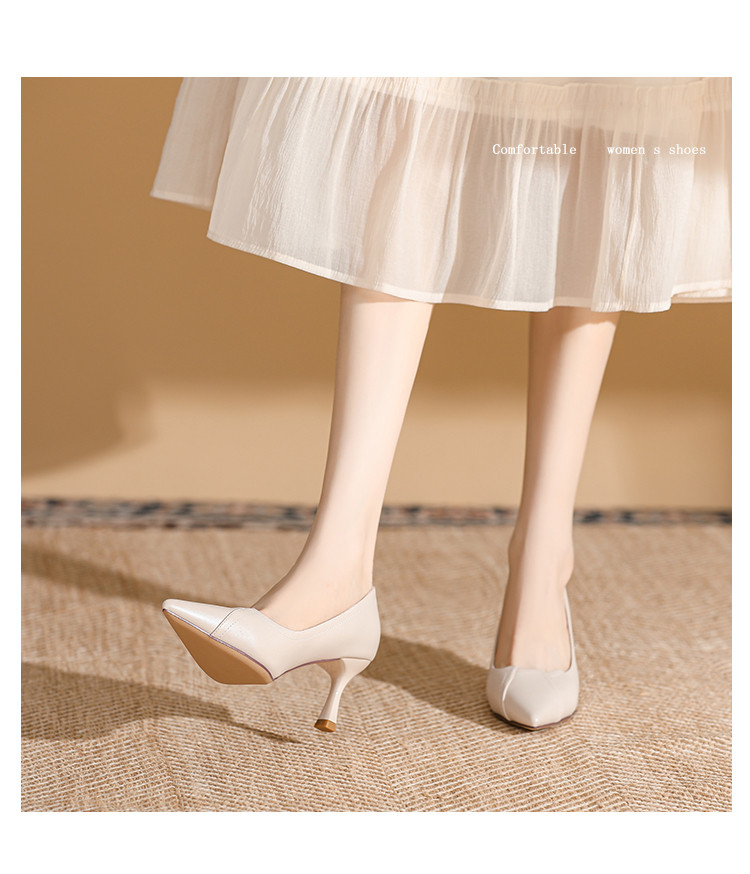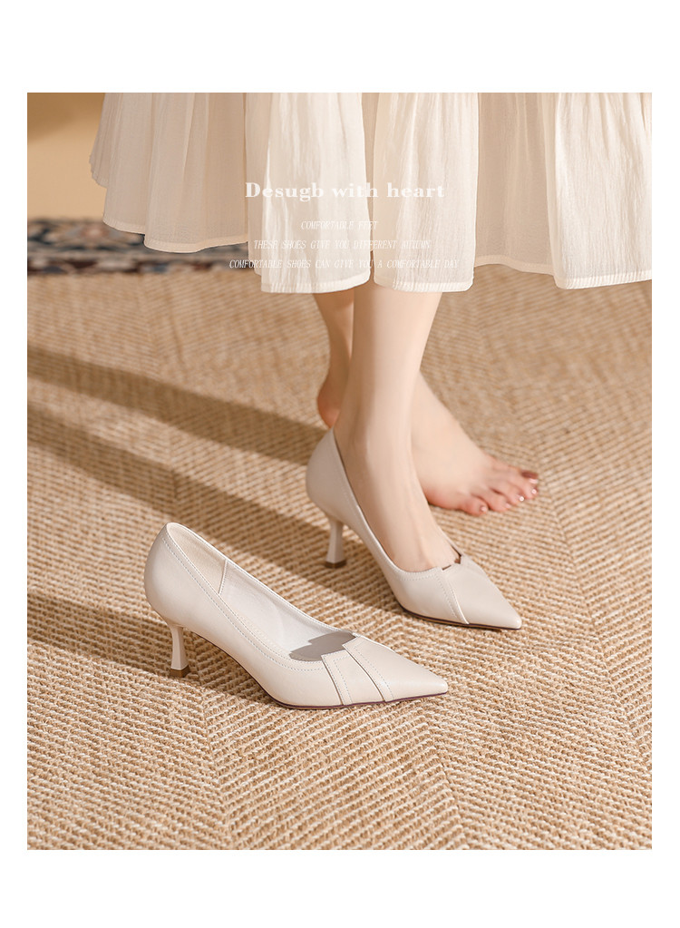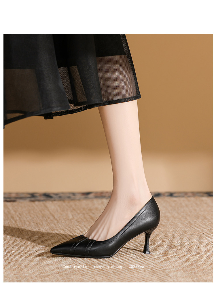 春夏气质尖头细跟高跟鞋女一脚蹬百搭通勤鞋时装鞋时尚单鞋伴娘鞋 823063