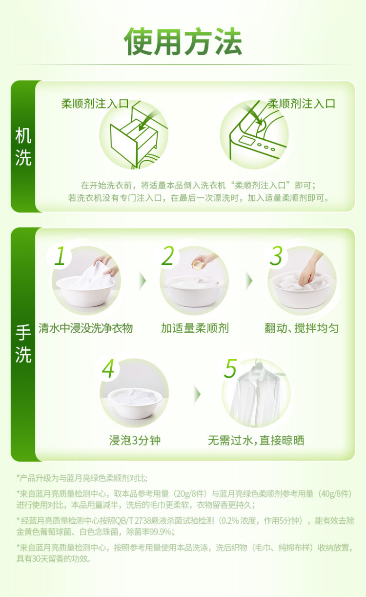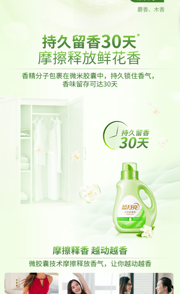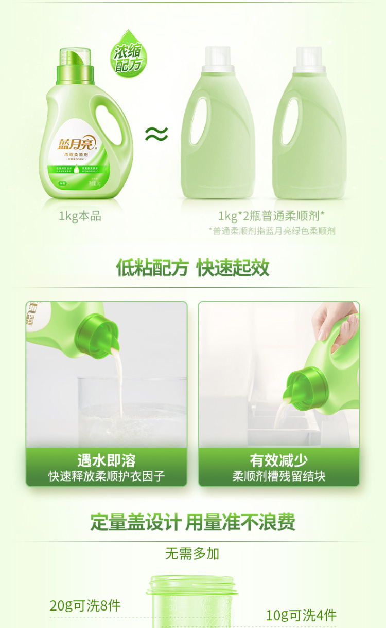 商品名称:蓝月亮 浓缩柔顺剂(白茶香)1kg/瓶 持久留香30天防静电成人儿童可用