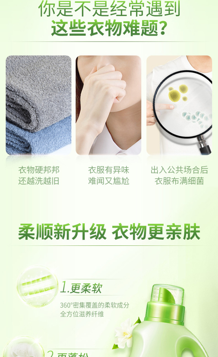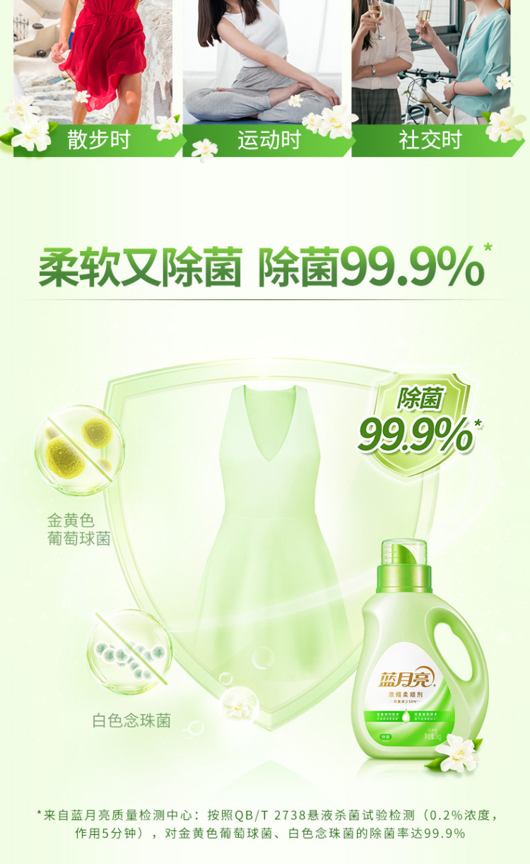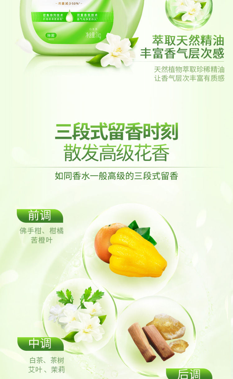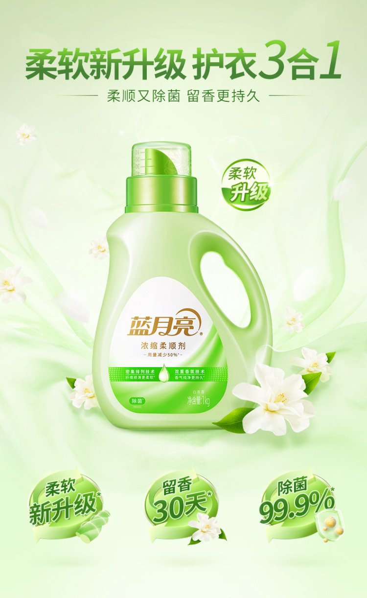 商品名称:蓝月亮 浓缩柔顺剂(白茶香)1kg/瓶 持久留香30天防静电成人儿童可用