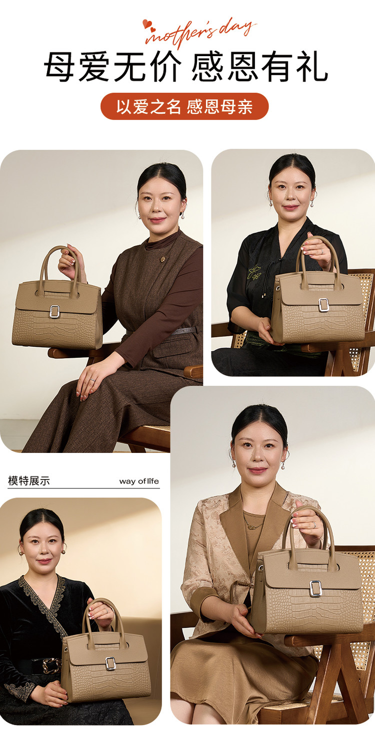 商品名称:【母亲节礼物】包包百搭时尚大容量斜挎高级感头层牛皮手提妈妈包 273495
