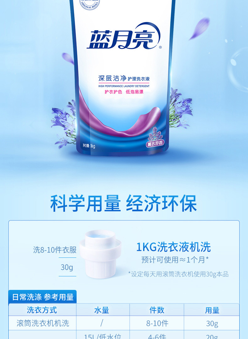 商品名称:蓝月亮 深层洁净洗衣液(薰衣草香)1kg/袋成人儿童洗衣液