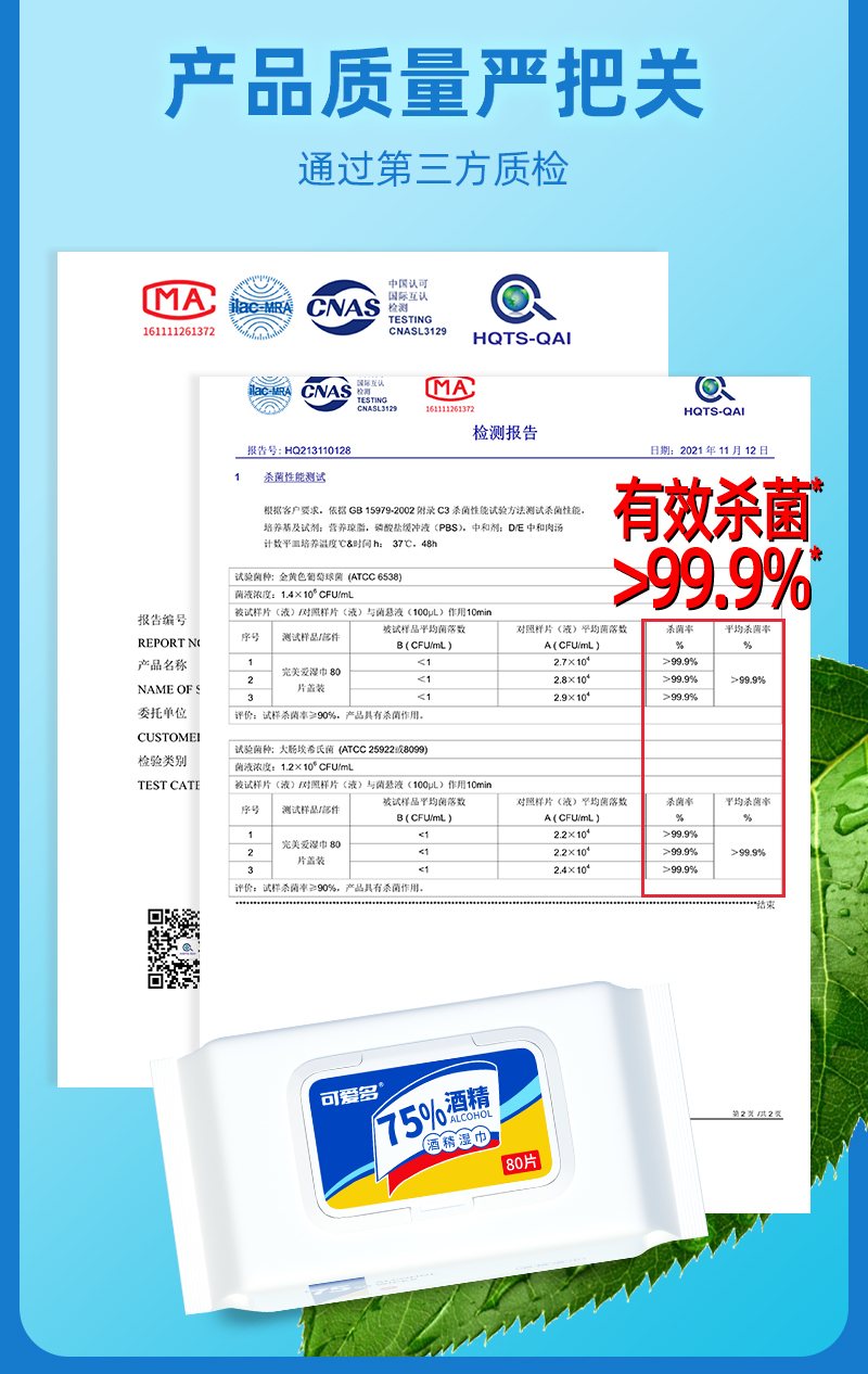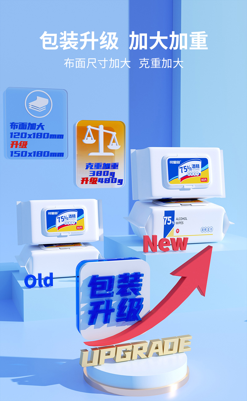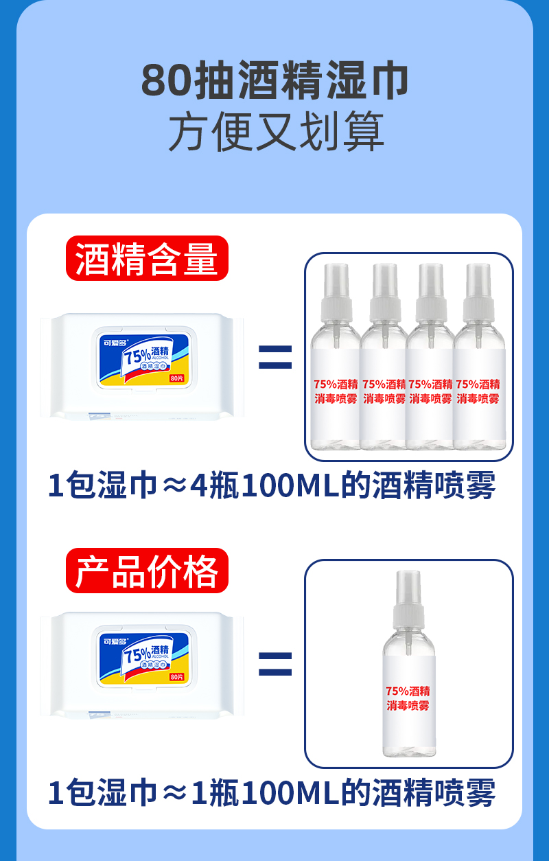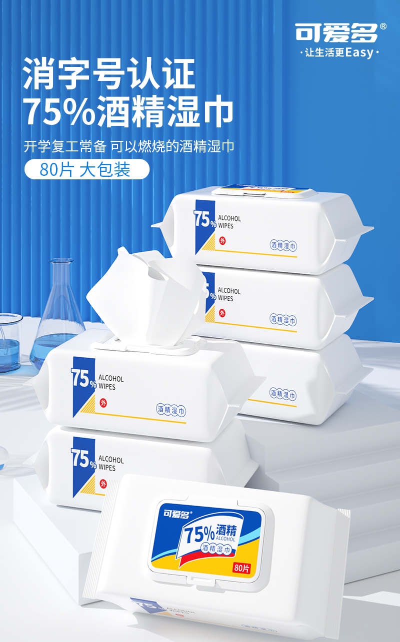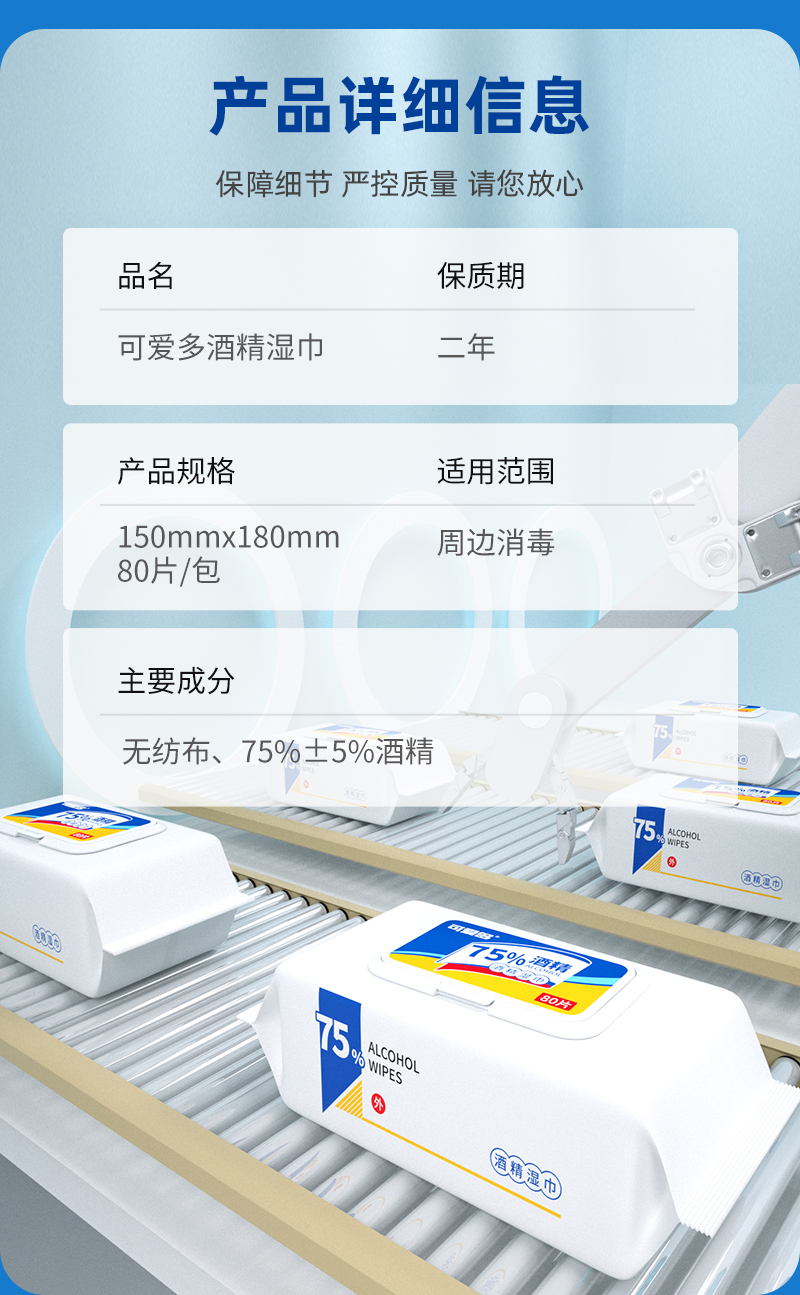 商品名称:可爱多75度酒精原液湿巾80抽 居家消毒湿巾
