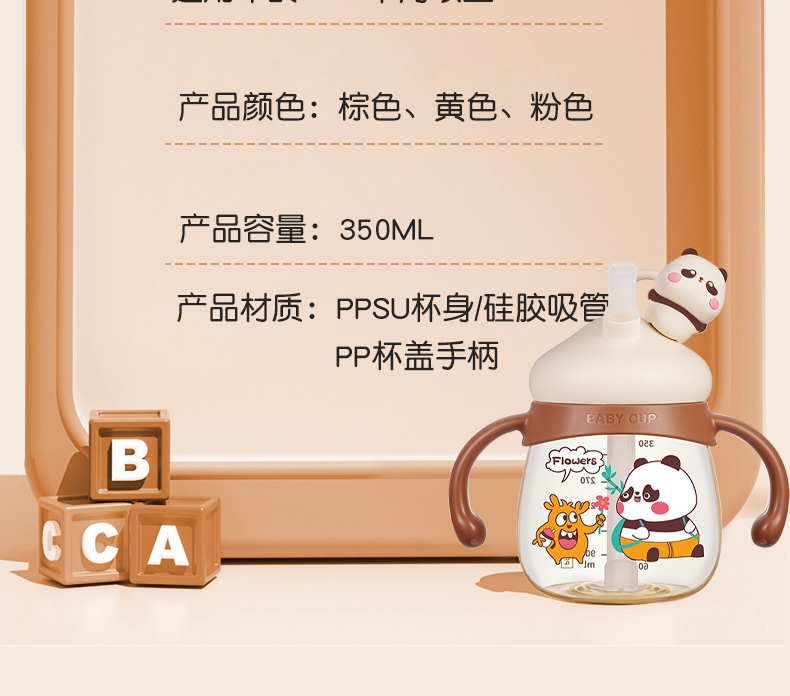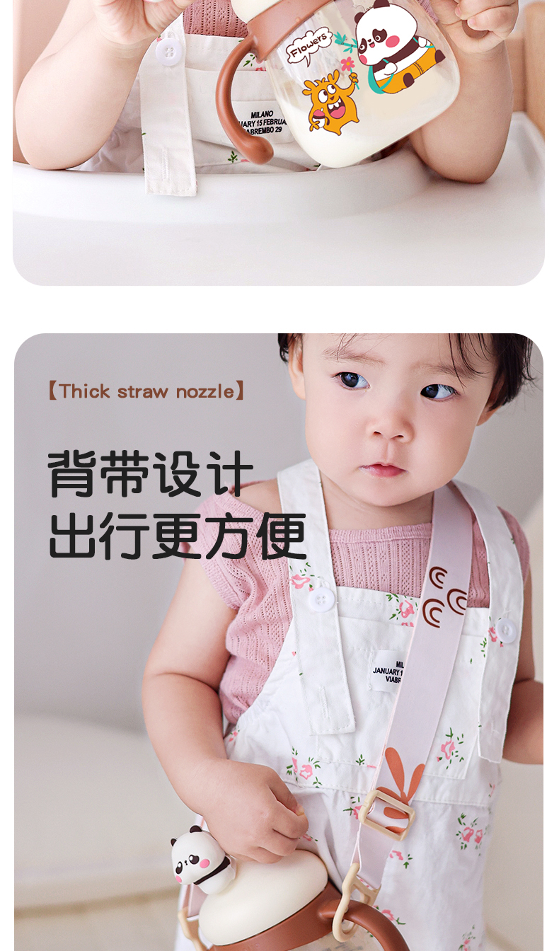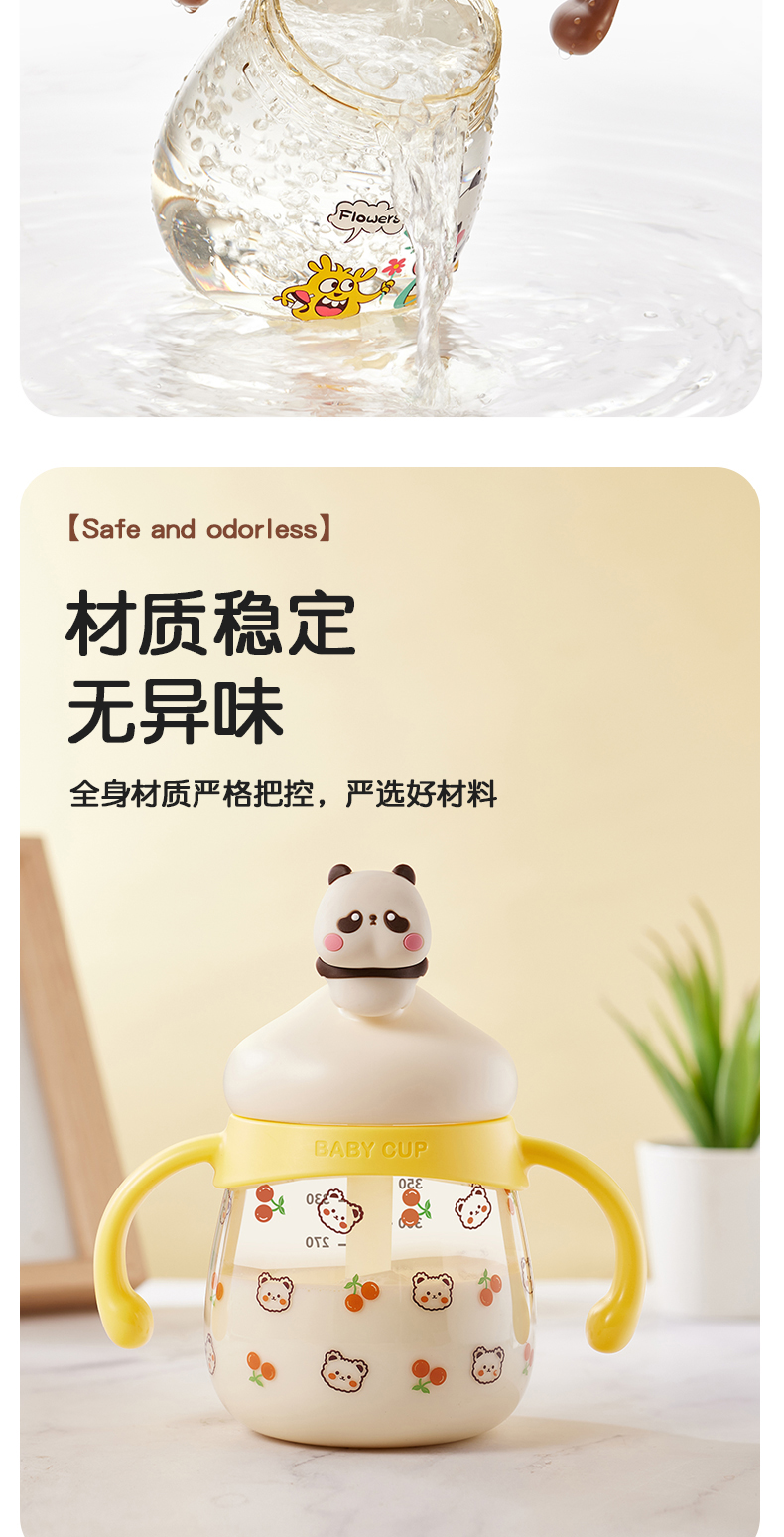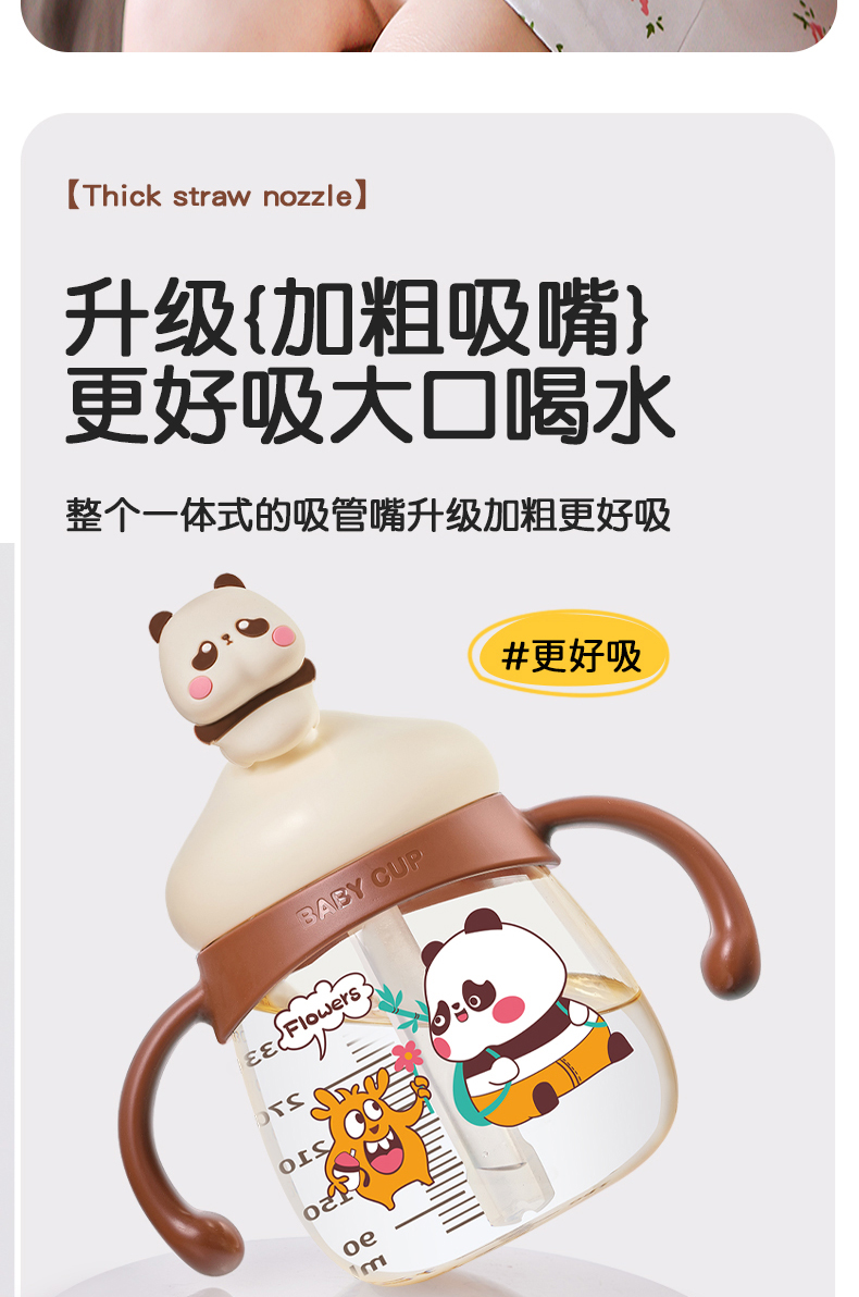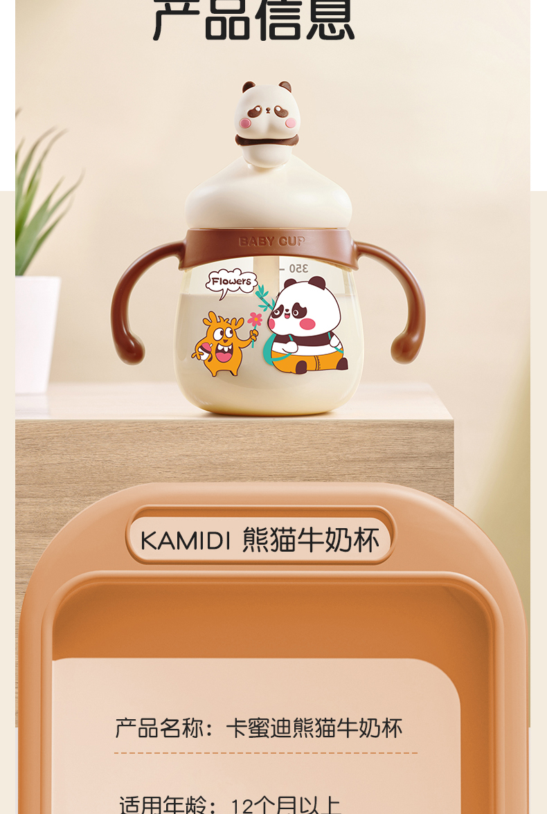 商品名称:卡蜜迪/kamidi 熊猫牛奶杯吸管水杯喝奶喝水PPSU专用防摔学饮杯吸管杯儿童刻度饮水杯