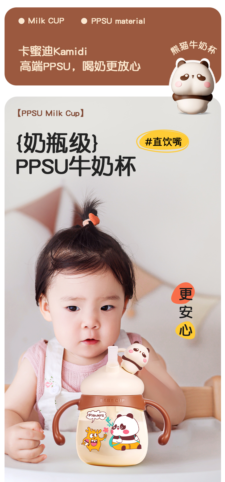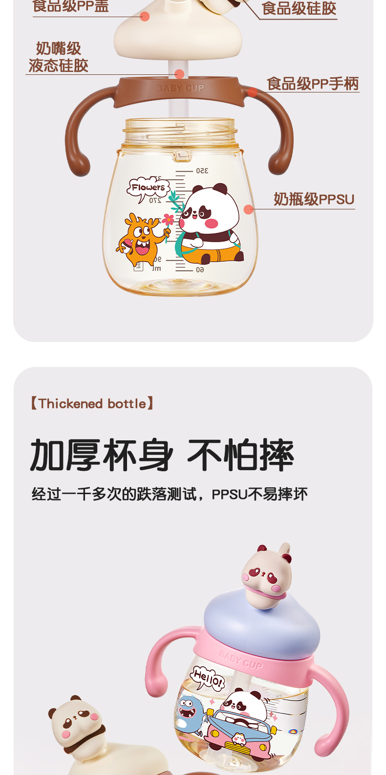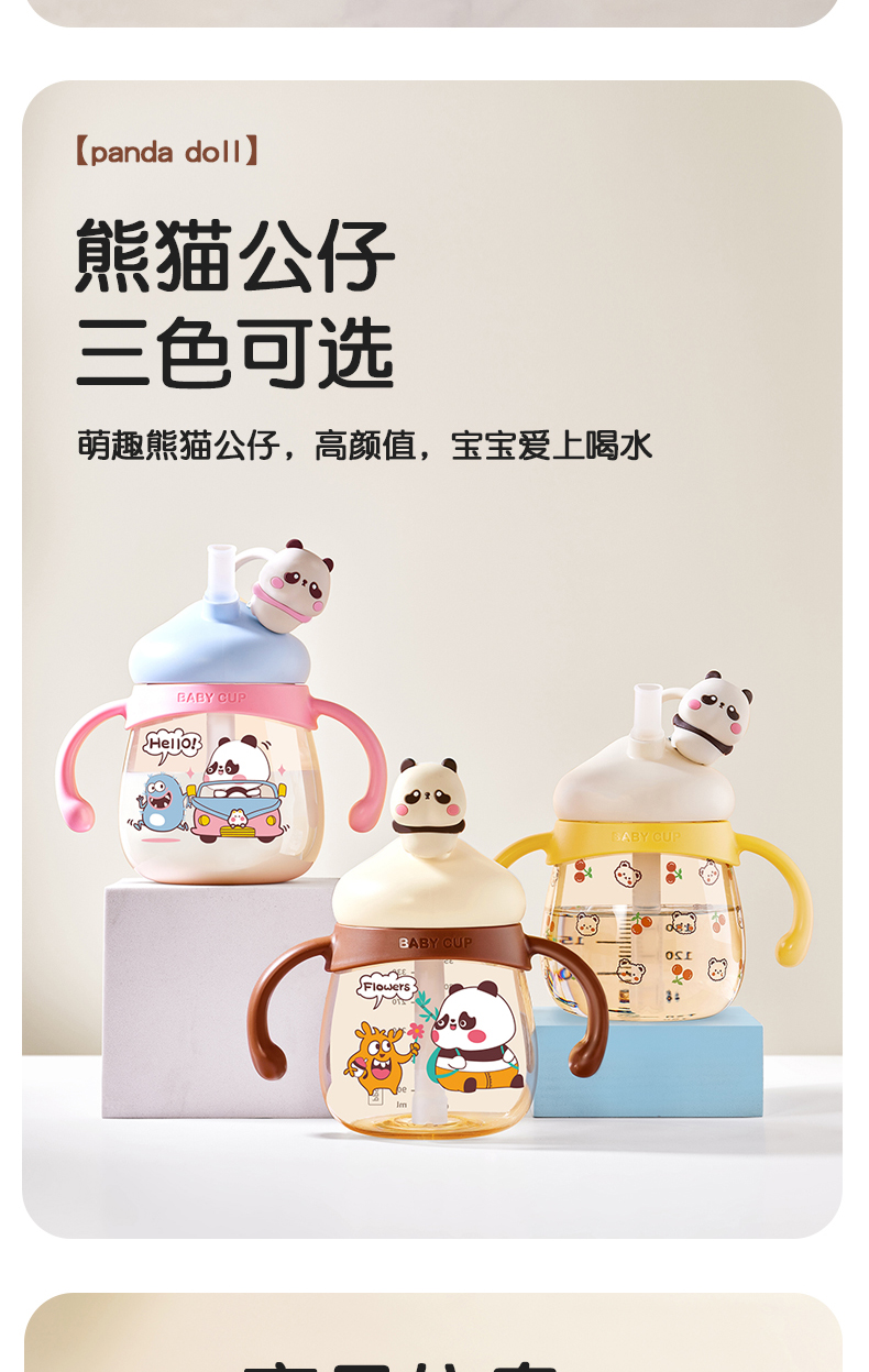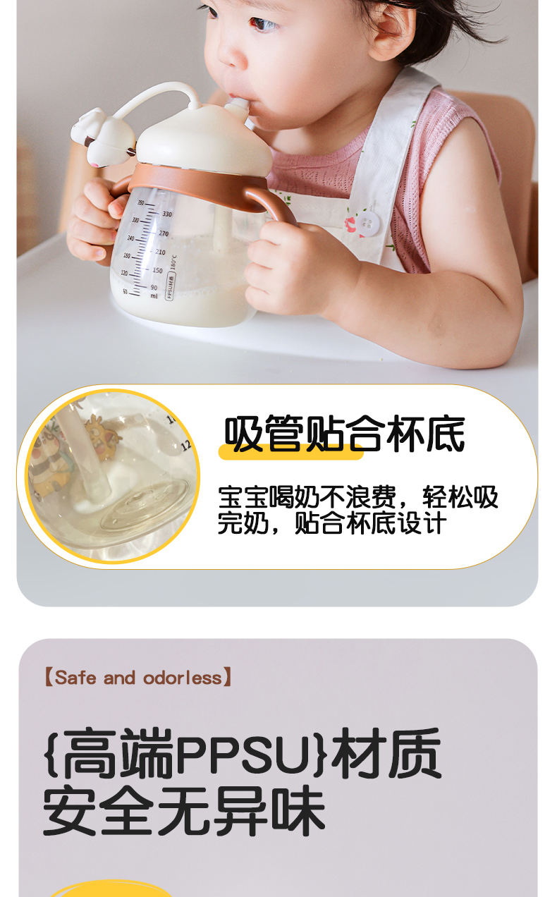 商品名称:卡蜜迪/kamidi 熊猫牛奶杯吸管水杯喝奶喝水PPSU专用防摔学饮杯吸管杯儿童刻度饮水杯