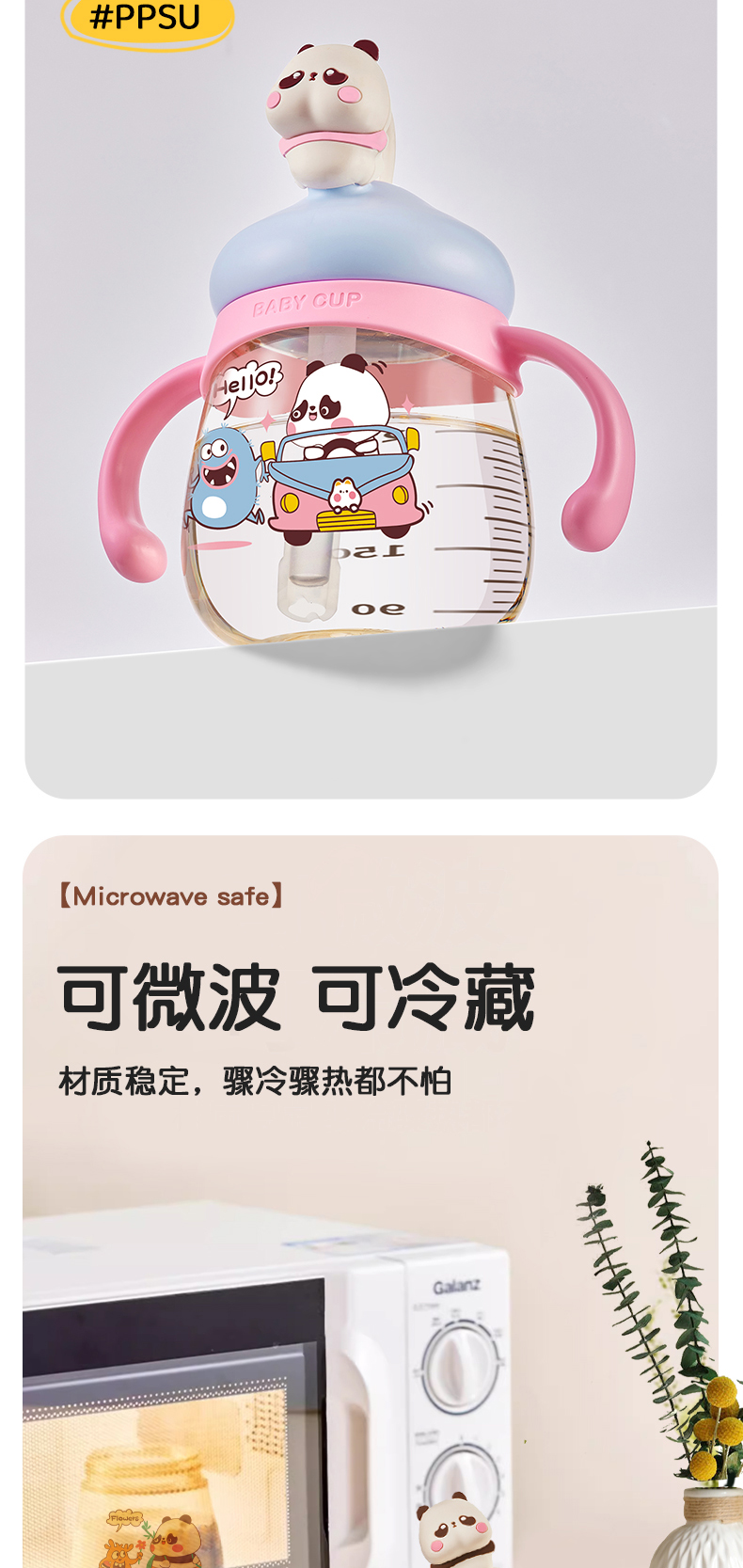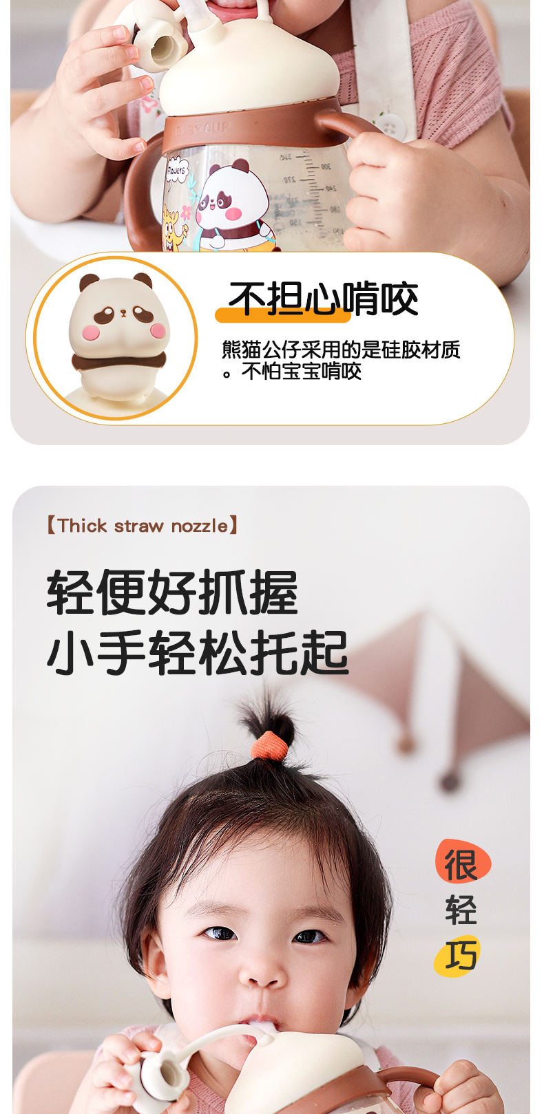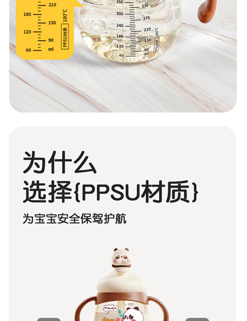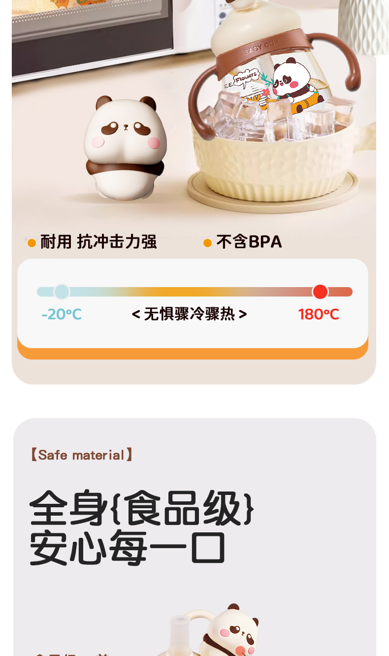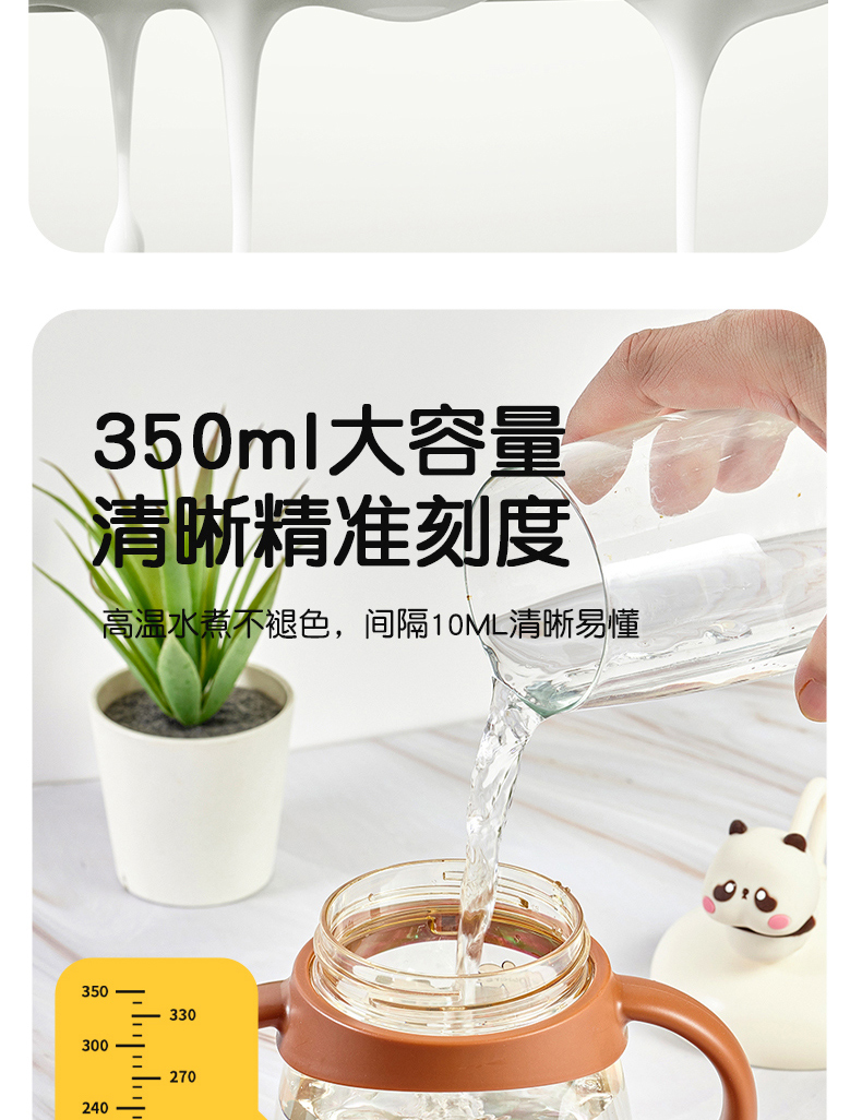 商品名称:卡蜜迪/kamidi 熊猫牛奶杯吸管水杯喝奶喝水PPSU专用防摔学饮杯吸管杯儿童刻度饮水杯