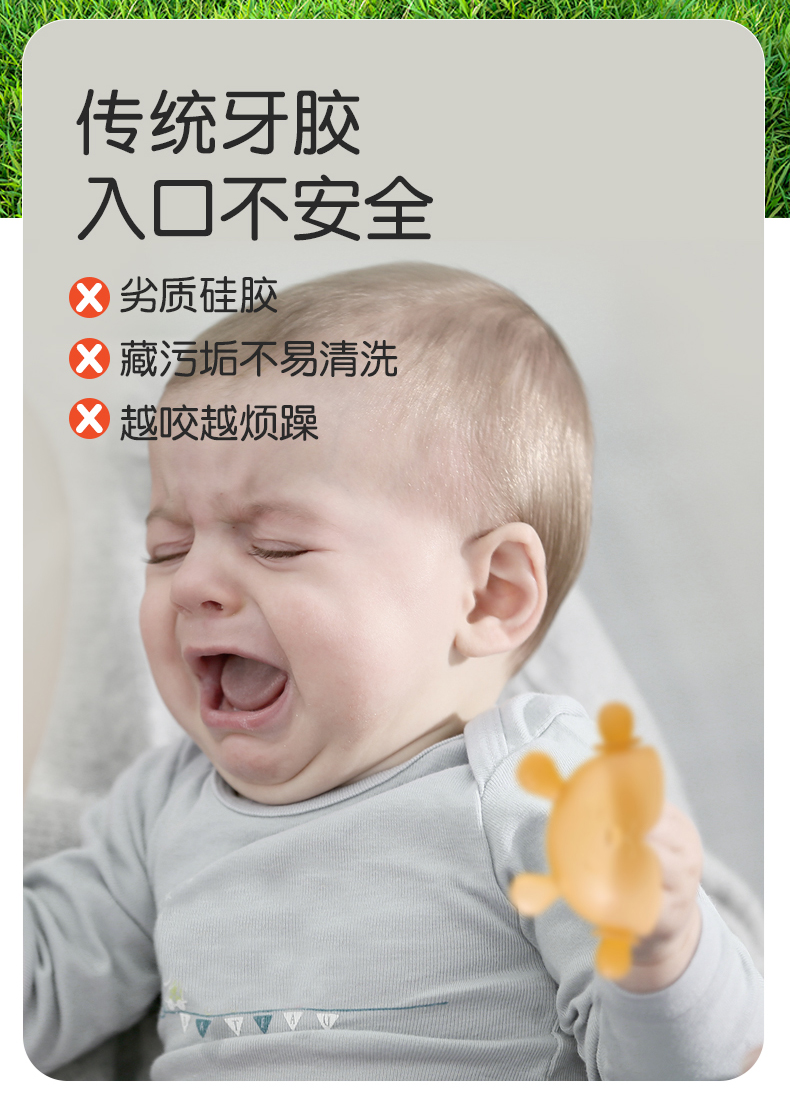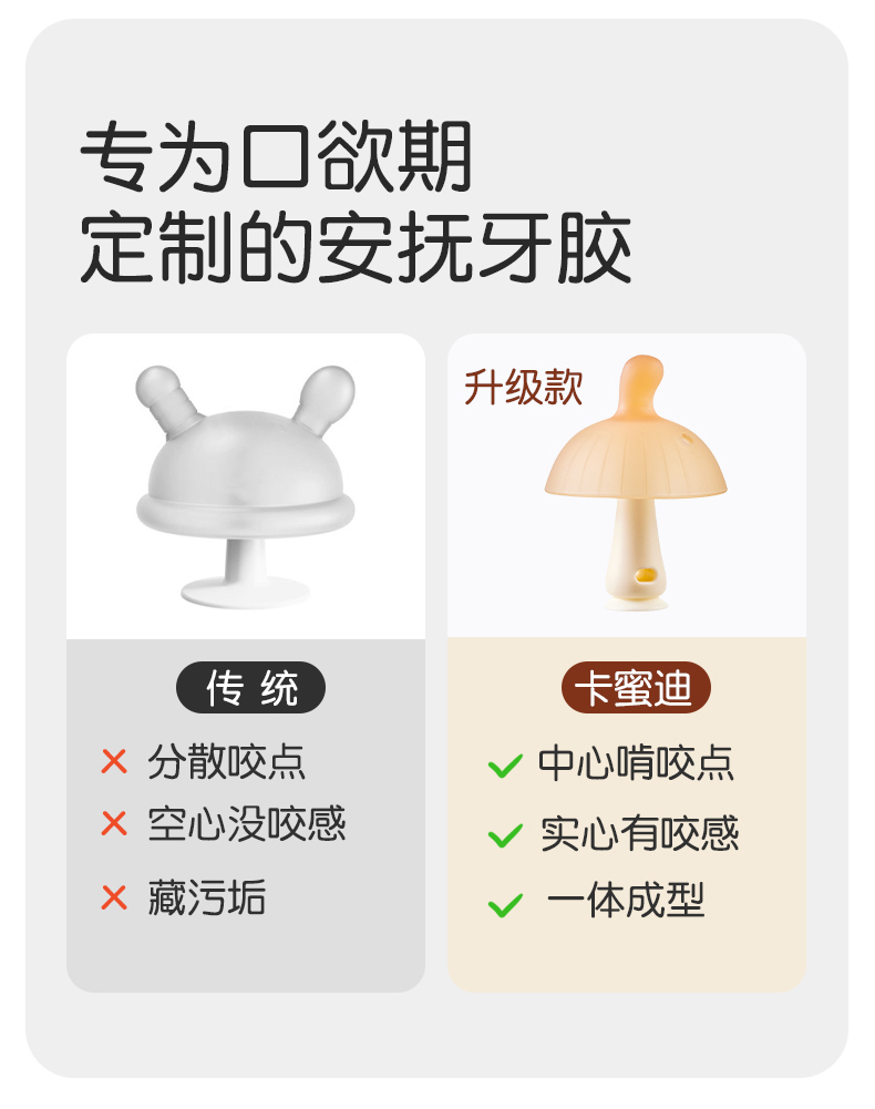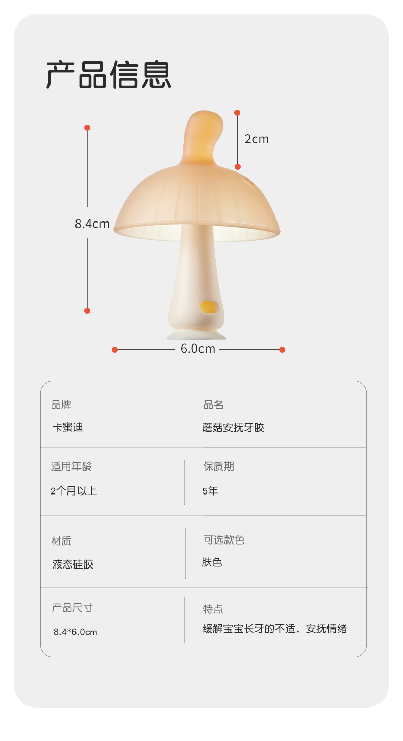 商品名称:卡蜜迪kamidi世*喜*同款牙胶婴儿磨牙棒宝宝出牙全硅胶咬胶防吃手蘑菇安抚一体磨牙胶