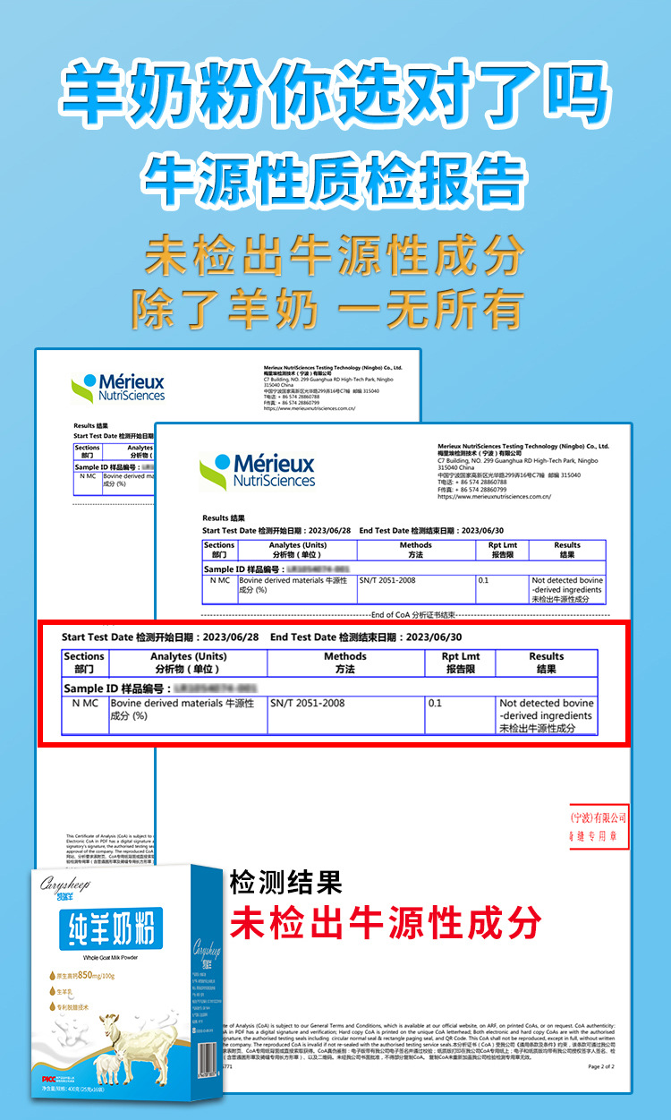 商品名称:凯瑞羊纯羊奶粉400克/盒成人学生青少年女士中老年早餐奶粉盒装礼