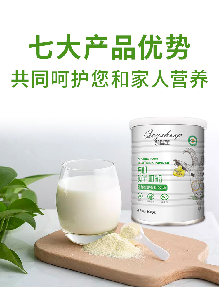 商品名称:凯瑞羊有机纯羊奶粉300克/罐无蔗糖高钙蛋白无添加羊奶粉中老年孕妇学生营养乳粉