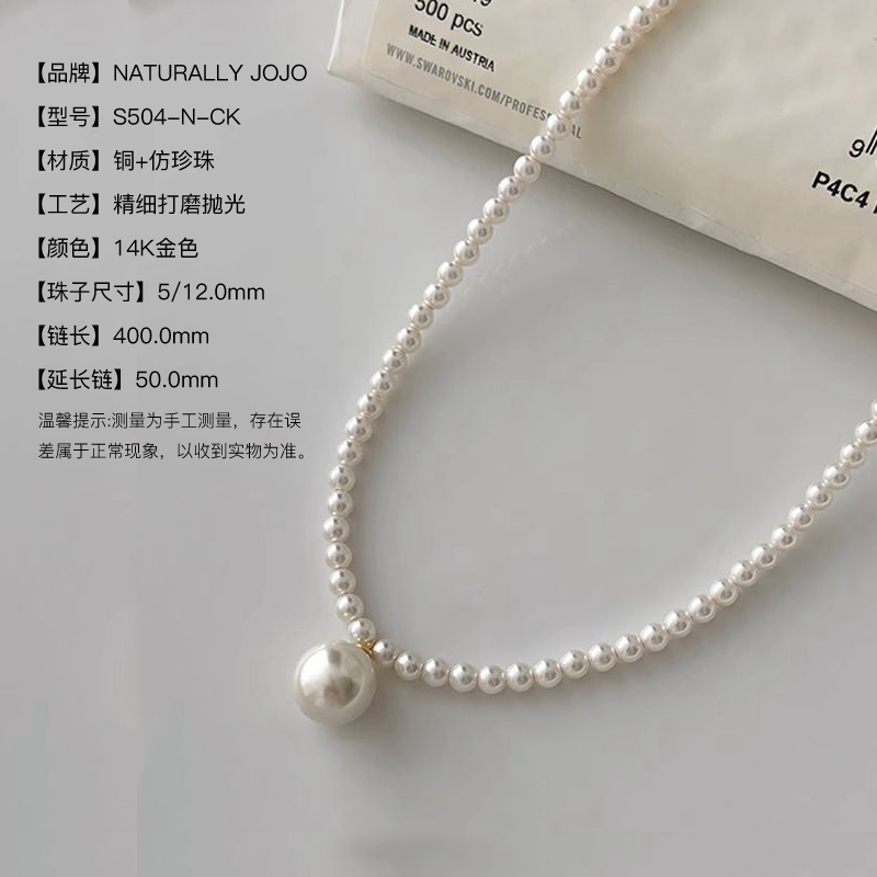商品名称:NATURALLY JOJO 女士轻奢小众设计高级感时尚小众法式高亮仿珍珠项链锁骨链新款颈链爆款