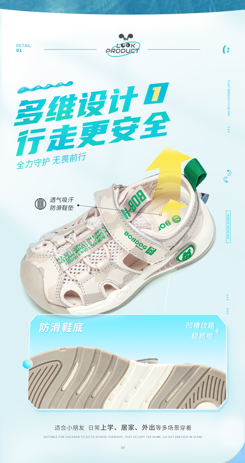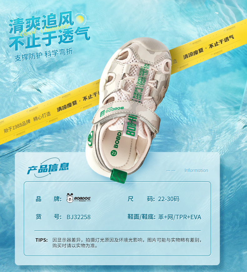 商品名称:【断码清仓】巴布豆house童鞋夏季儿童包头凉鞋3-6岁透气室内幼儿园防撞学步鞋