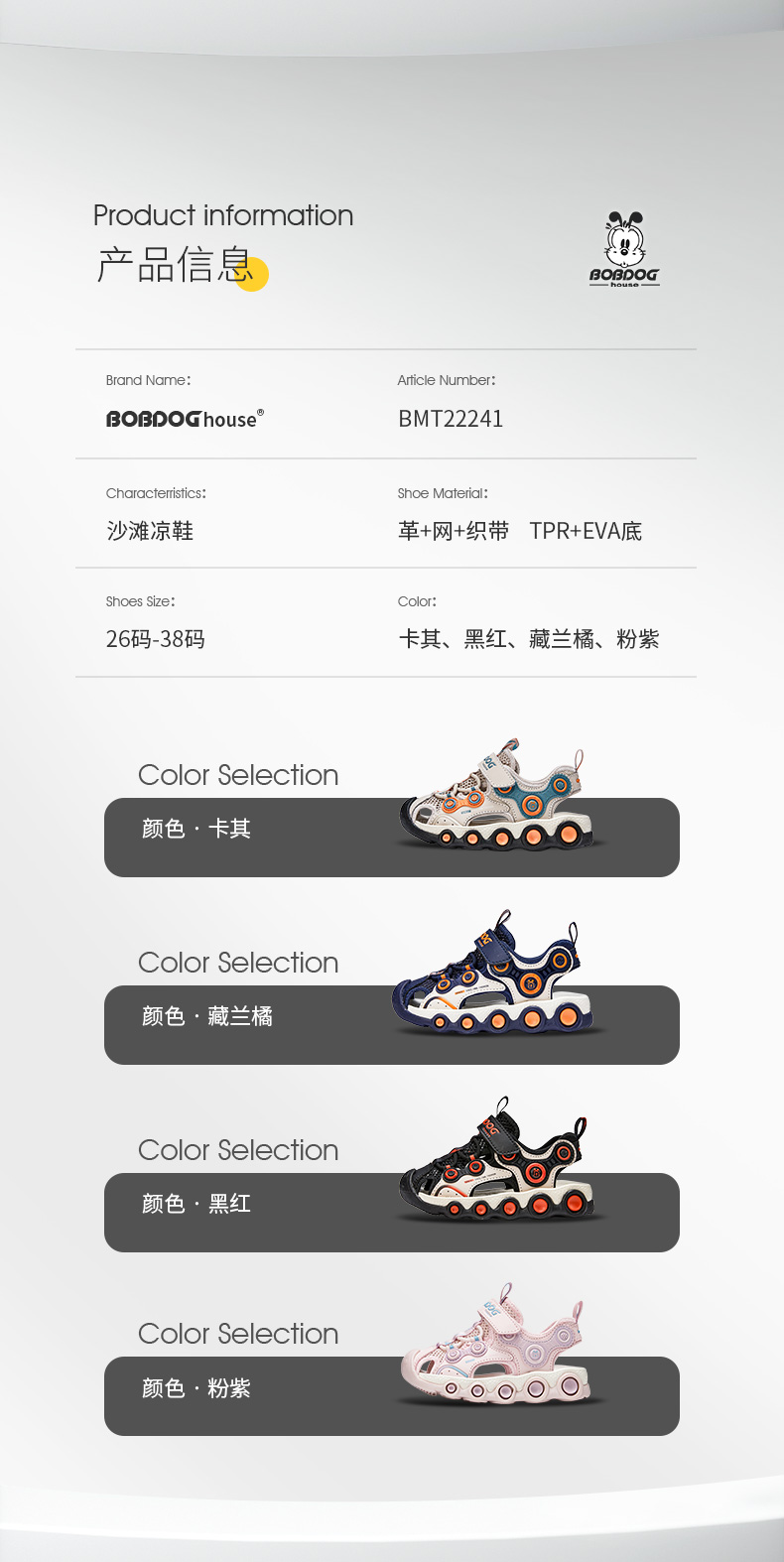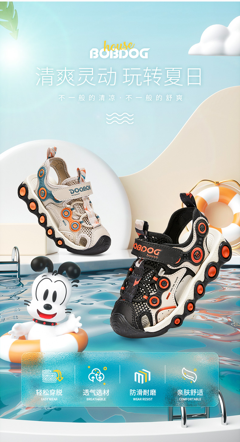商品名称:【断码清仓】巴布豆童鞋夏季男女童包头凉鞋防滑中大童沙滩鞋子