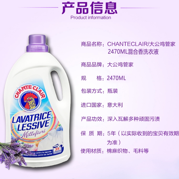 商品名称:意大利 大公鸡强效去污薰衣草洗衣液2470ml(包邮到店)