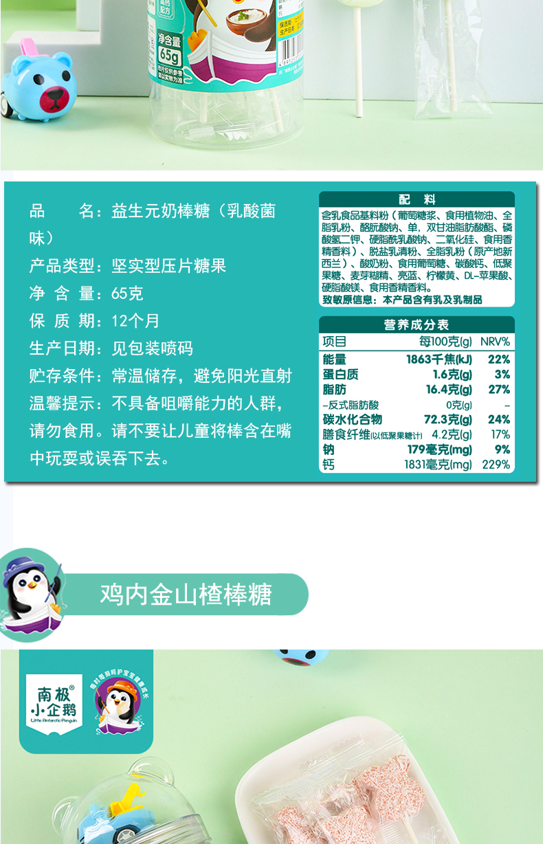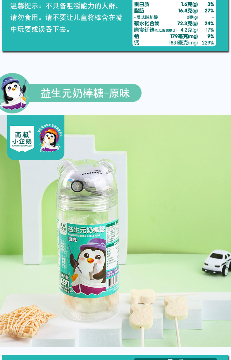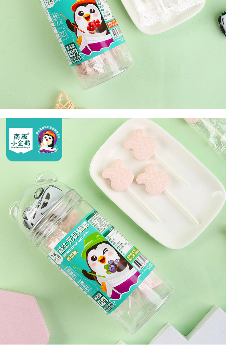 商品名称:南极小企鹅 益生元兔子形奶棒棒糖 四味可以儿童零食糖果儿童