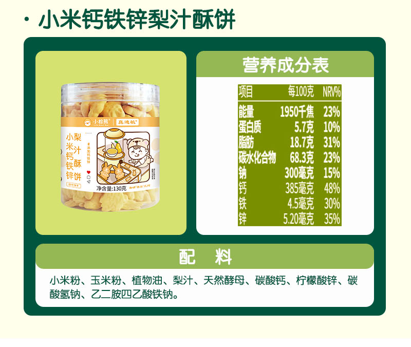 无麸质小米钙铁锌梨汁酥饼