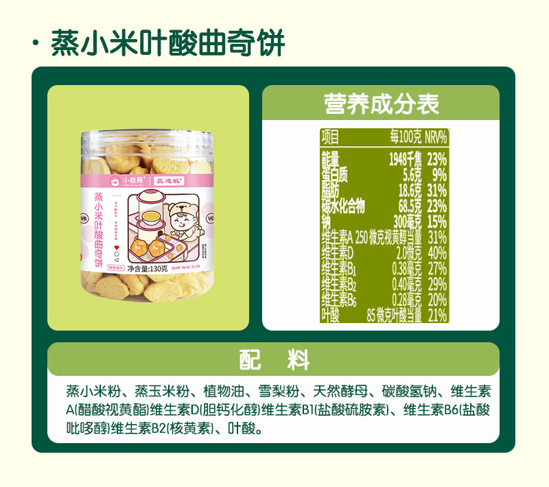 无麸质蒸小米叶酸曲奇饼