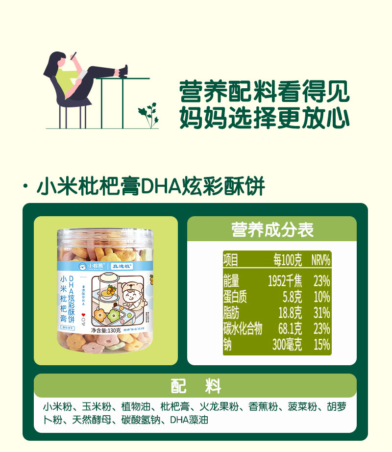 无麸质小米枇杷膏DHA炫彩酥饼