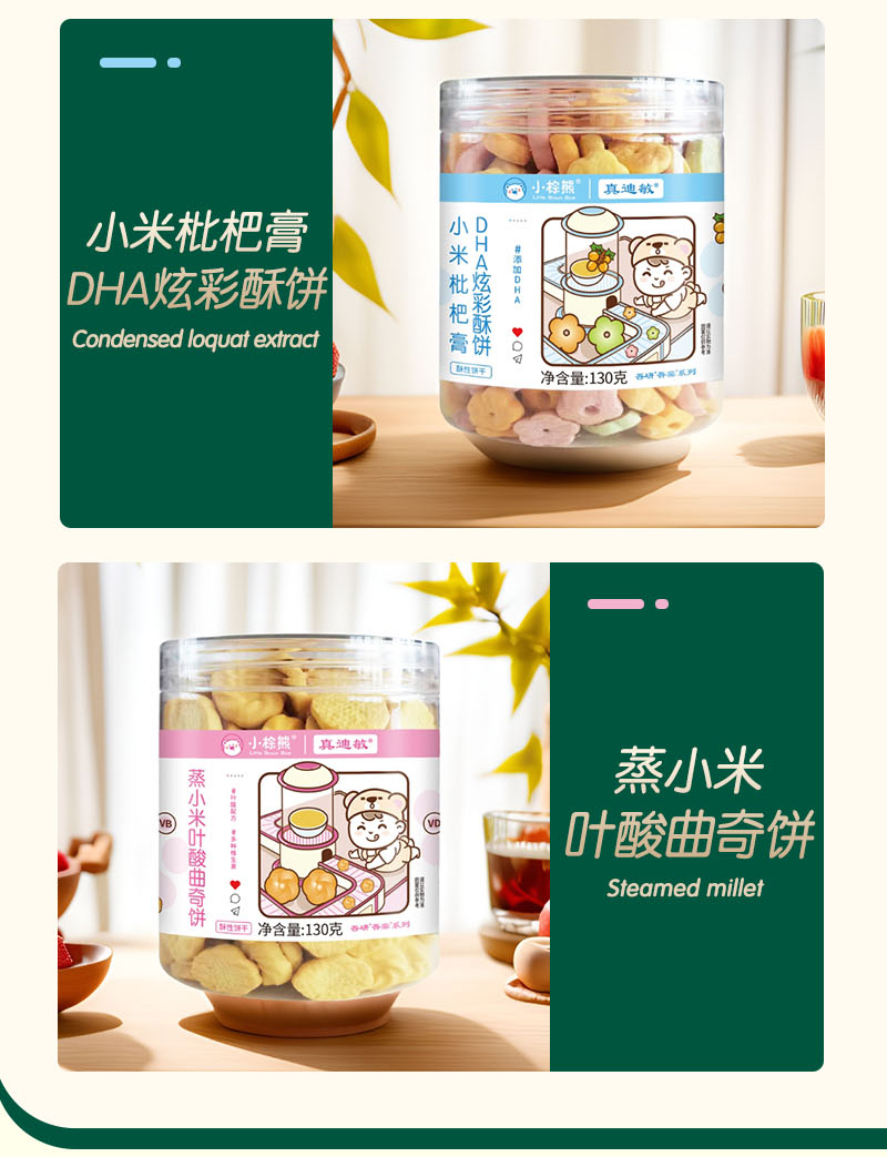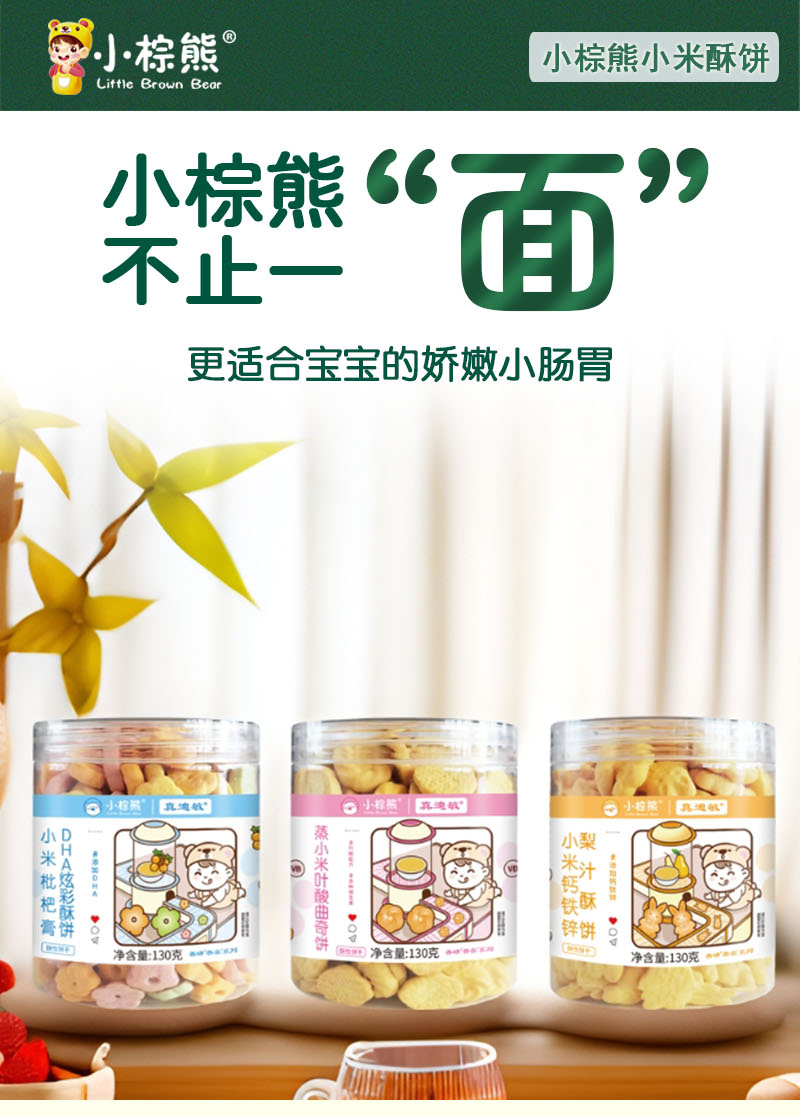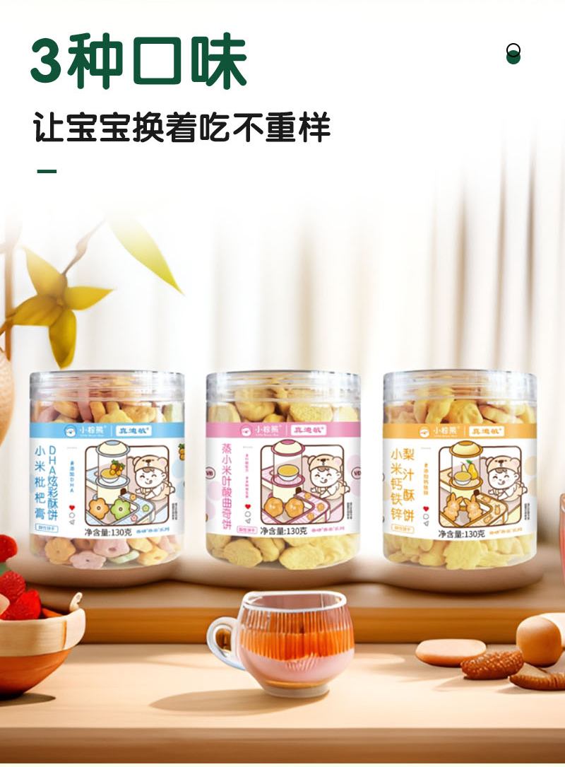 小棕熊无麸质小米曲奇饼干3味可选枇杷膏DHA炫彩钙铁锌梨汁小零食儿童