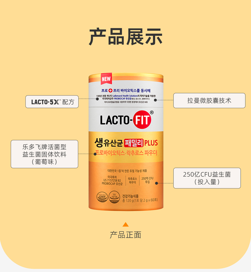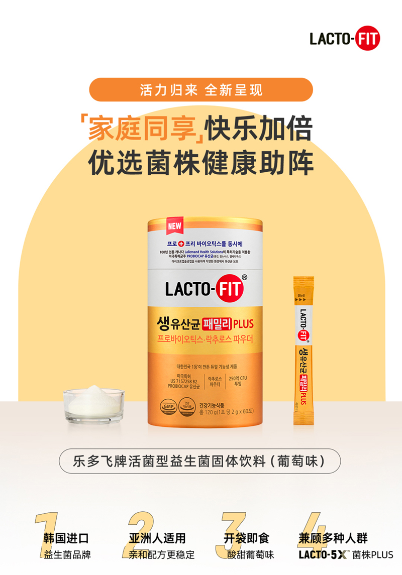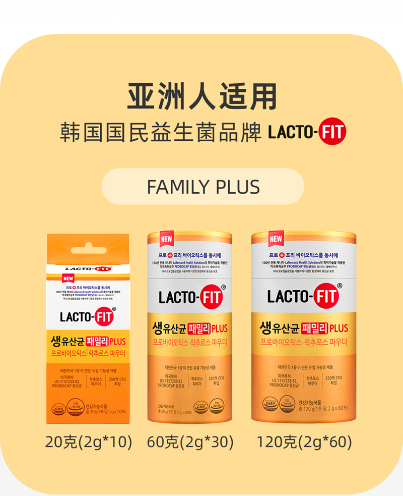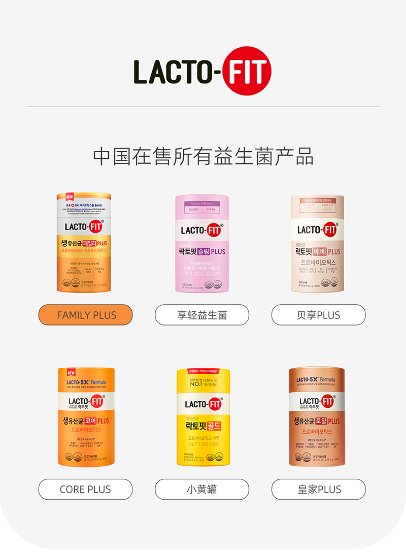 商品名称:【包邮】韩国钟根堂LACTO-FIT乐多飞益生菌Family Plus全家肠胃道活菌60条/罐
