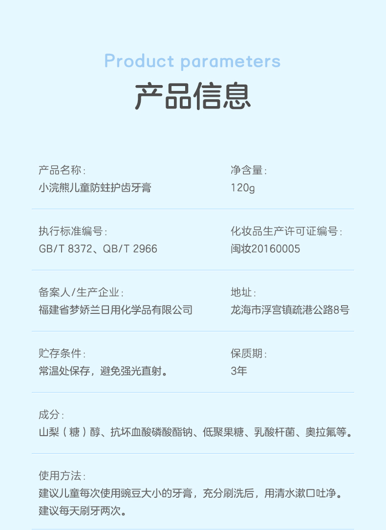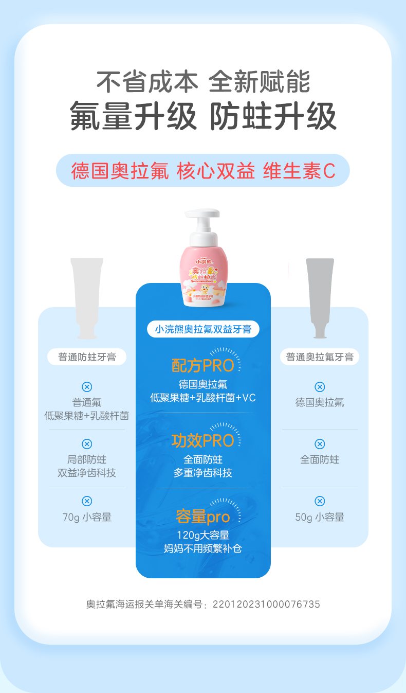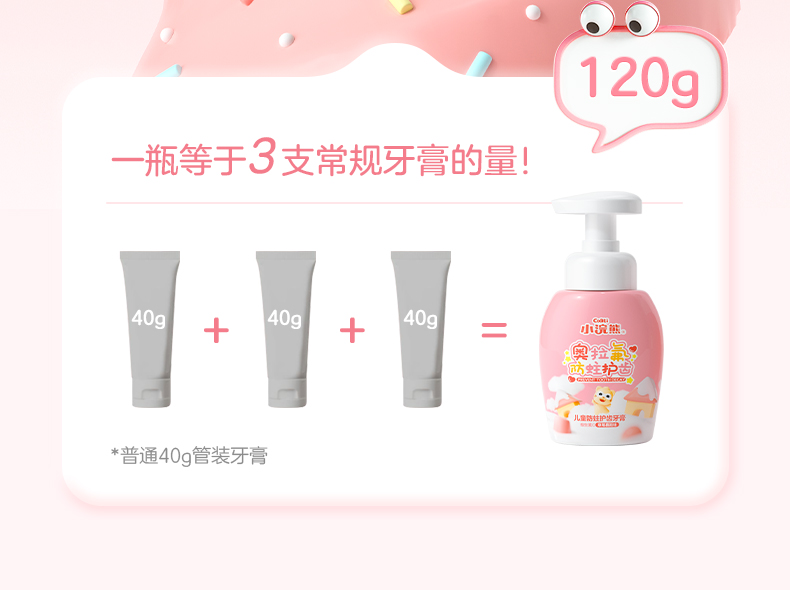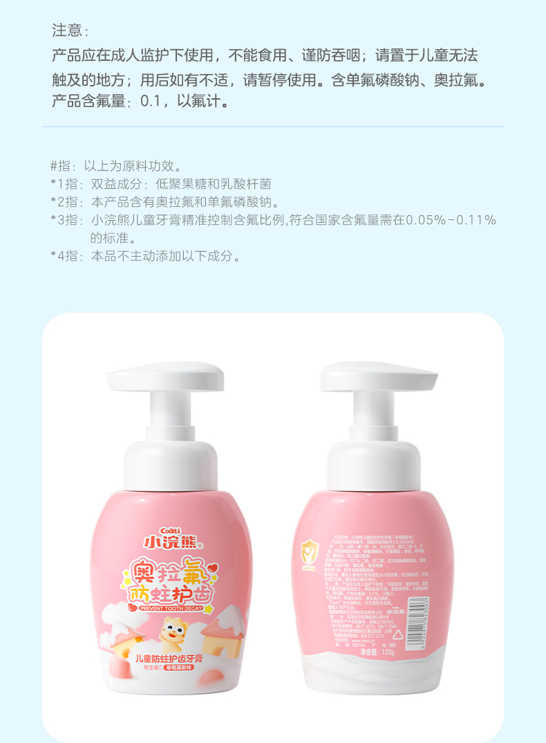 商品名称:【品牌直供】小浣熊儿童奥拉氟牙膏120g按压式含氟护齿益生菌牙膏大容量口味可选